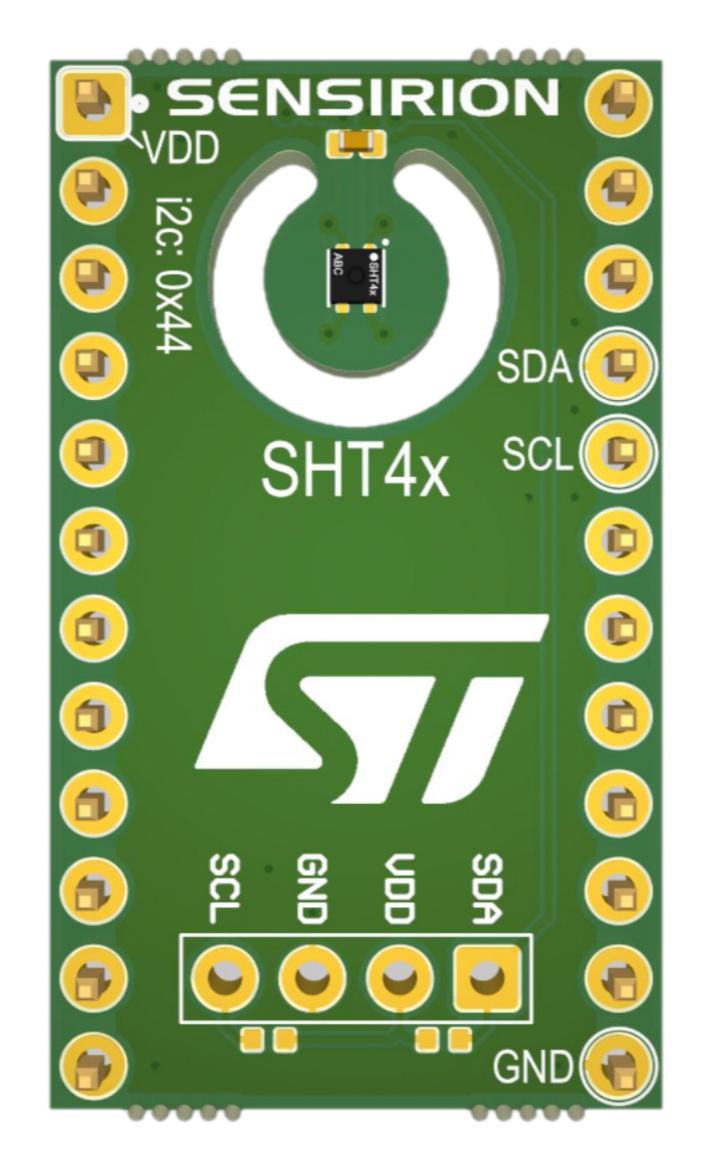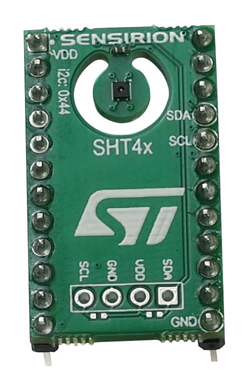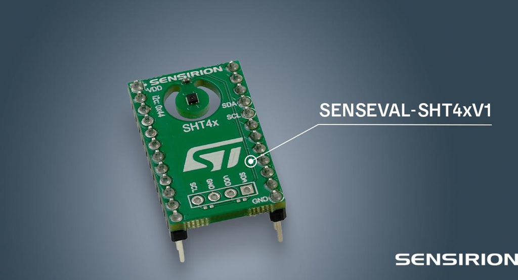 SENSEVAL-SHT4XV1 is an evaluation board for SHT4x humidity and temperature sensors. SHT4x is a digital sensor platform for measuring relative humidity and temperature at different accuracy classes. Its I2C interface provides several preconfigured I2C addresses while maintaining an ultra-low power budget. The power-trimmed internal heater can be used at three heating levels thus enabling sensor operation in demanding environments.