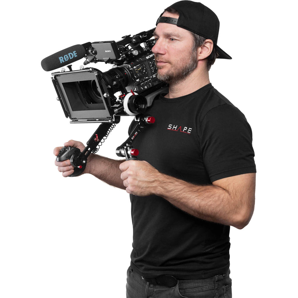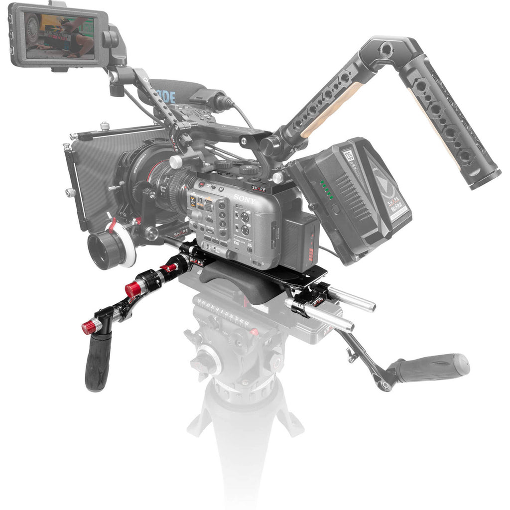 Add a protective cage, a shoulder mount, and a variety of accessories to your Sony FX6 camera with this Baseplate with Camera Cage and Articulating Handle from SHAPE. The kit includes a lightweight aluminum VCT baseplate, a camera cage, and an articulating push-button handle with a rubber handgrip.