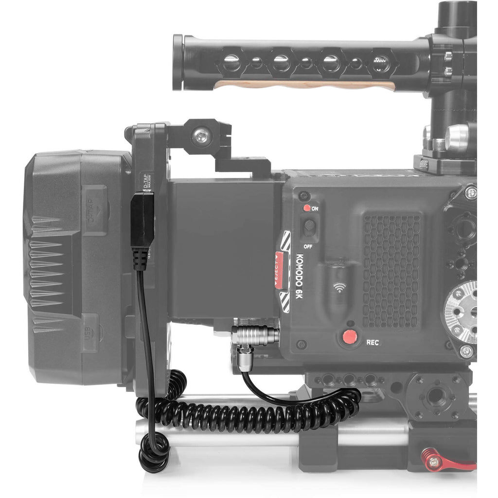 Power your RED KOMODO cinema camera using a professional battery using this D-Tap Power Cable from SHAPE. The cable converts the 14.4 voltage from a D-Tap, such as from a high-capacity V-mount or Gold mount battery source, to the 11 to 17 VDC required to power your KOMODO camera using its 2-pin LEMO-type input. This coiled cable extends from 10 to 24" in length.