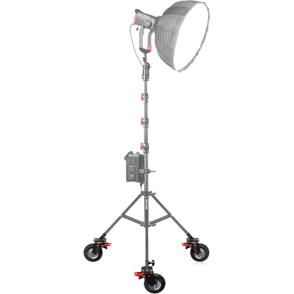 The set of three Montreal Big Wheel casters from SHAPE adds mobility to light stands with 1" wide legs. These wheels feature 8" diameter inflatable pneumatic tires for smooth movement on rugged terrain. Each leg mount provides a 360° adjustable swivel range and features a sturdy brake to lock the light stand in place.
