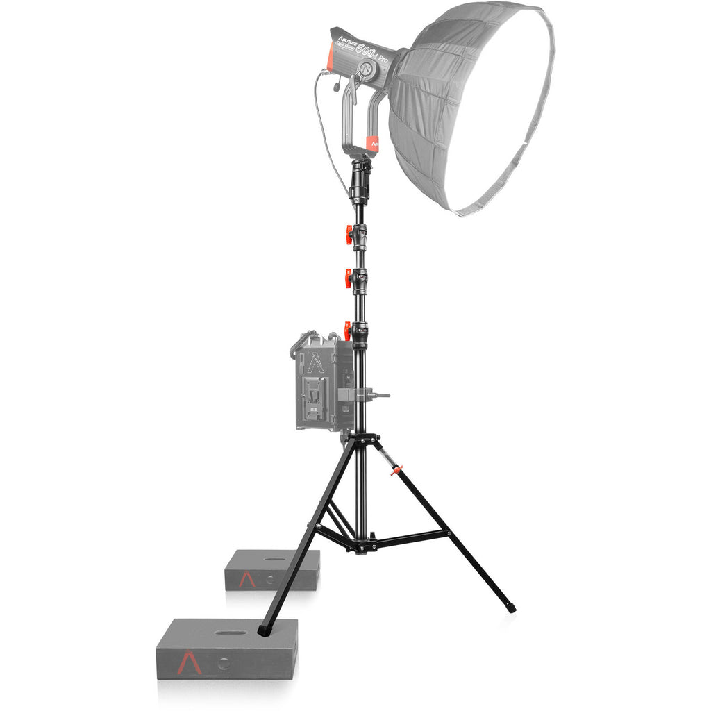 This black/chrome-finished Montreal Triple Riser Combo Stand from SHAPE is well-designed to withstand heavier fixtures with its 72 lb load capacity. With a maximum height of 14.8', the stand features damped spring risers to prevent any accidental hand pinching during adjustment. Additionally, the riser has a 43" footprint and an extendable leg that helps maintain balance, particularly useful when dealing with uneven terrain.