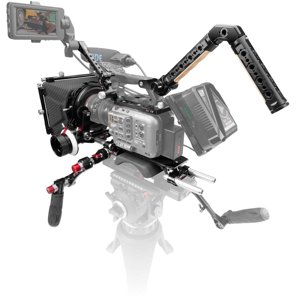 Add accessories and handheld functionality to your Sony FX6 camera with this Pro Shoulder Rig Kit from SHAPE. This extensive kit includes a shoulder mount baseplate with 15mm rod system, an articulating rosette handle, a viewfinder bracket, a 4 x 4" matte box kit, and a follow focus pro.