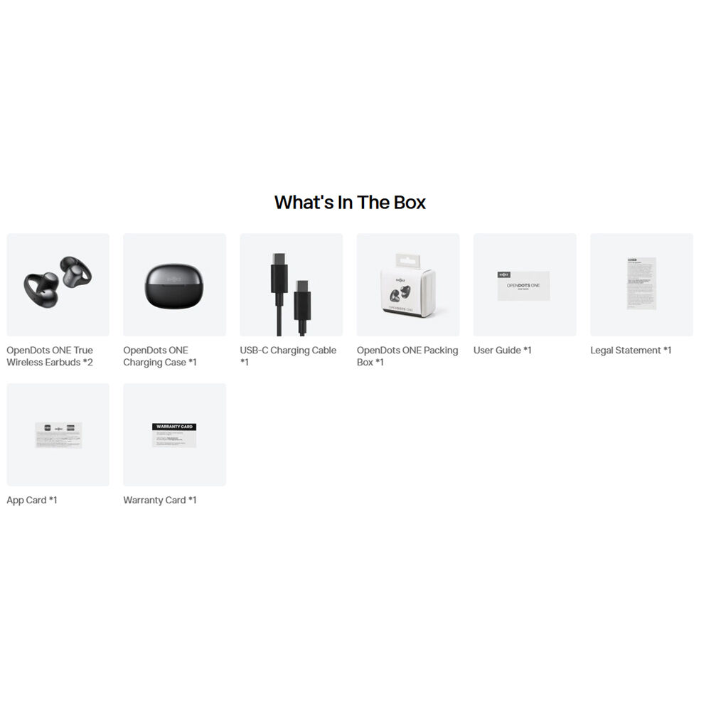 With the Shokz app for iOS and Android, you can select between four EQ presets, create two of your own custom EQ presets, customize touch controls, locate your earbuds, and more. DirectPitch tech keeps your audio private, preventing sound leakage. IP54 resistance makes the OpenDots ONE an excellent choice for workouts and explorations thanks to solid water, sweat, and dust resistance. With the charging case, you can get up to 40 hours of playback, and the case supports wireless Qi charging. The OpenDots ONE include a charging case and a USB-C charging cable.