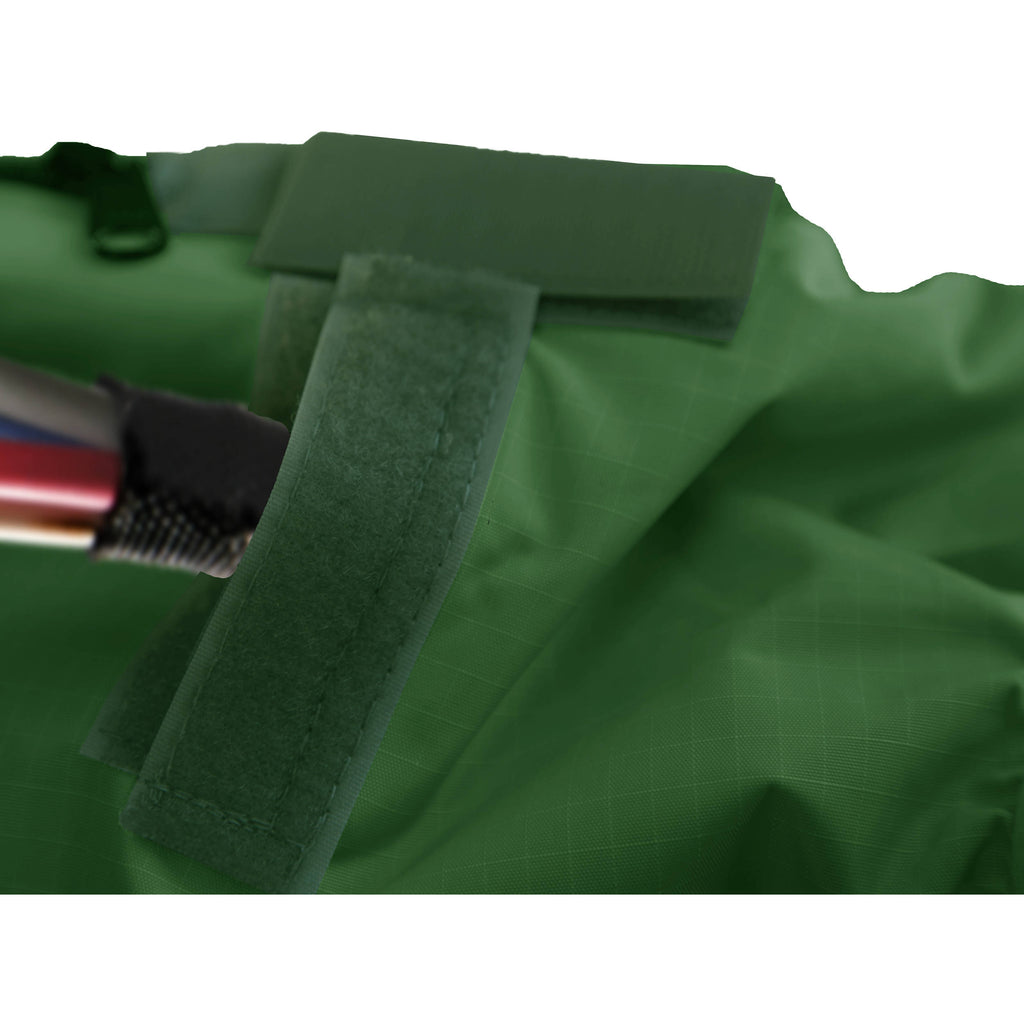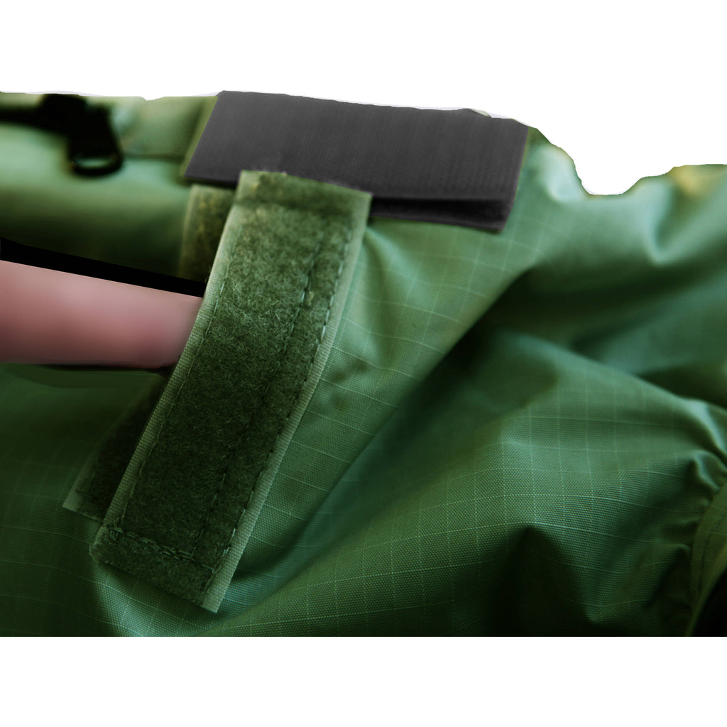 The green MTO-S1 Rain Cover for ENG/EFP Cameras from ShooterSlicker is designed to protect your camera from rain and dust. It features a zippered sleeve with access to the microphone and a front neoprene cuff. The rubber bushing provides easy access to the light stud, and the hook-and-loop strap allows you to envelop your camera while out in the field.