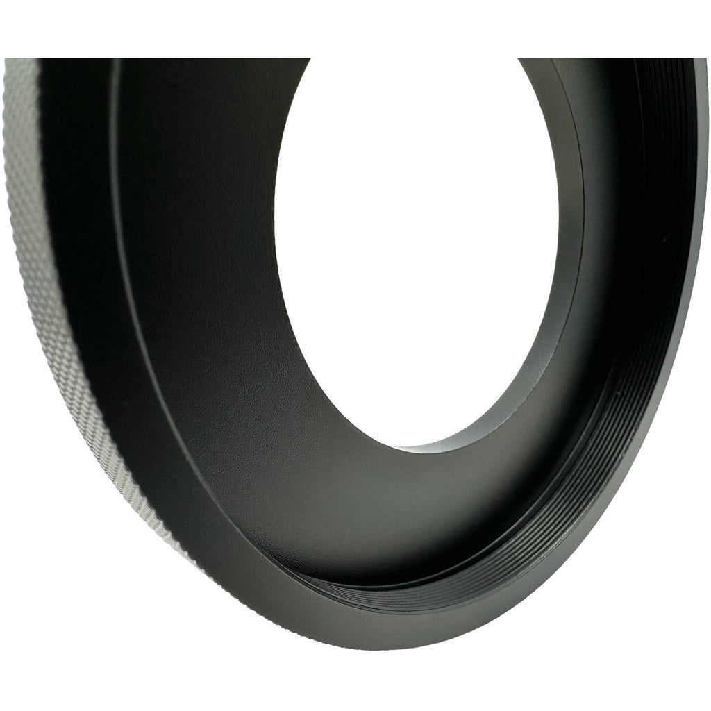 Mount a 95mm matte box onto your lens with this Signature Series 60 x 95mm Front Step-Up Pro SimRing from Simmod. The black, anodized aluminum ring screws onto any lens with an internal 60mm filter thread. It has a 95mm outer diameter to fit your matte box opening, providing a knurled edge around the whole edge, and it has no branding or marking on the outside. There is an 86mm inside thread on the front of the ring for adding a filter.