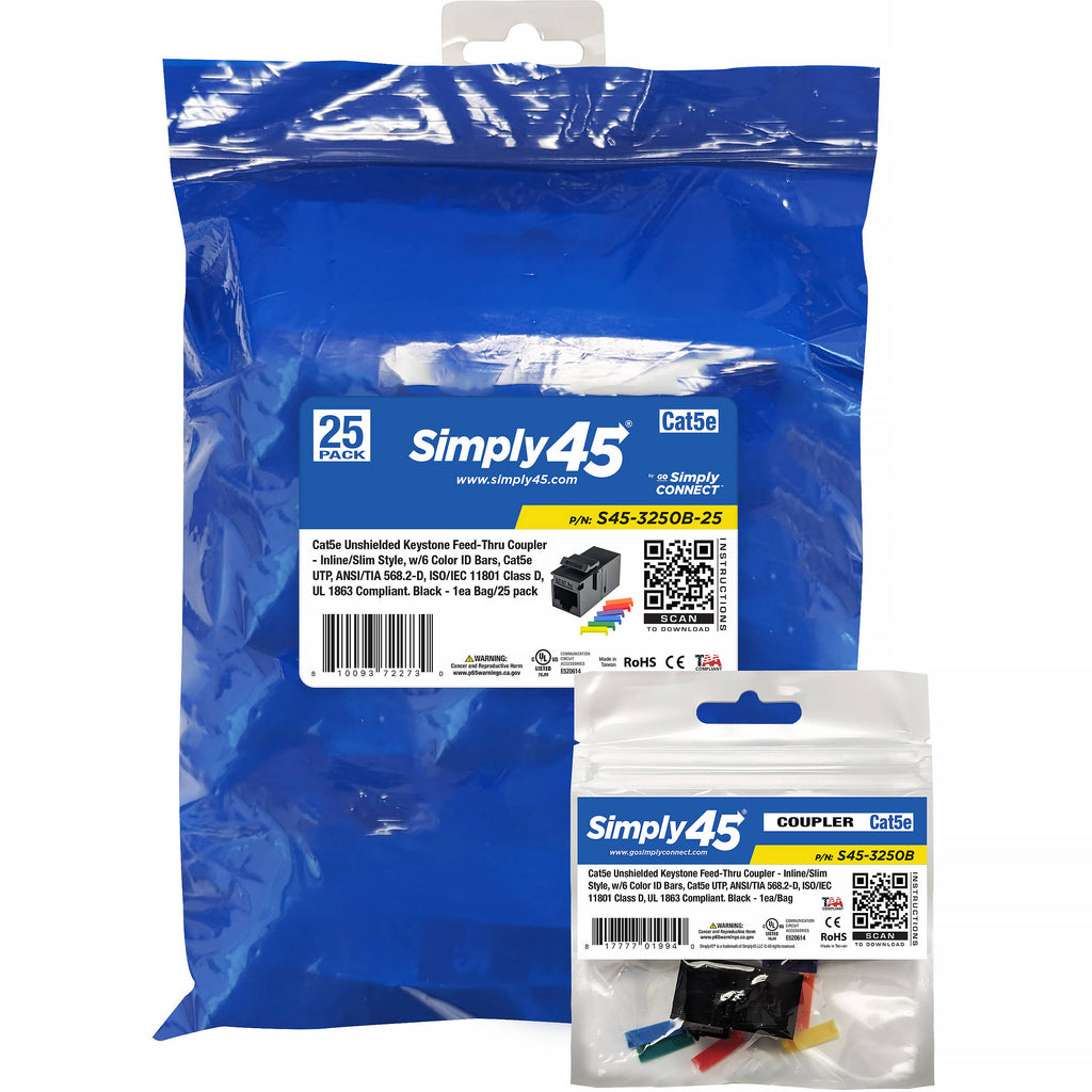 - Simply45 Cat 5e Unshielded Keystone Feed-Thru Coupler (White, 25-Pack)