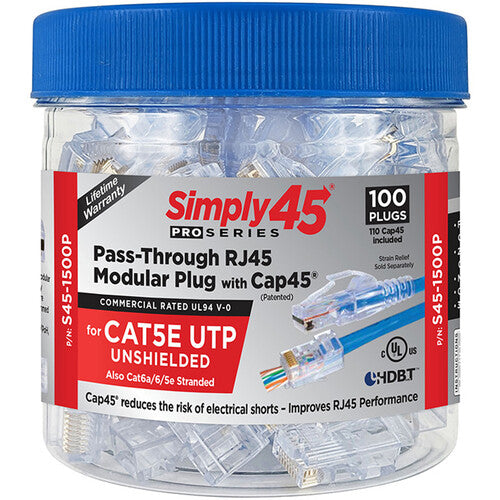 Simply45 Cat 5e Unshielded RJ45 Pass-Through Modular Plug (100-Piece Jar)