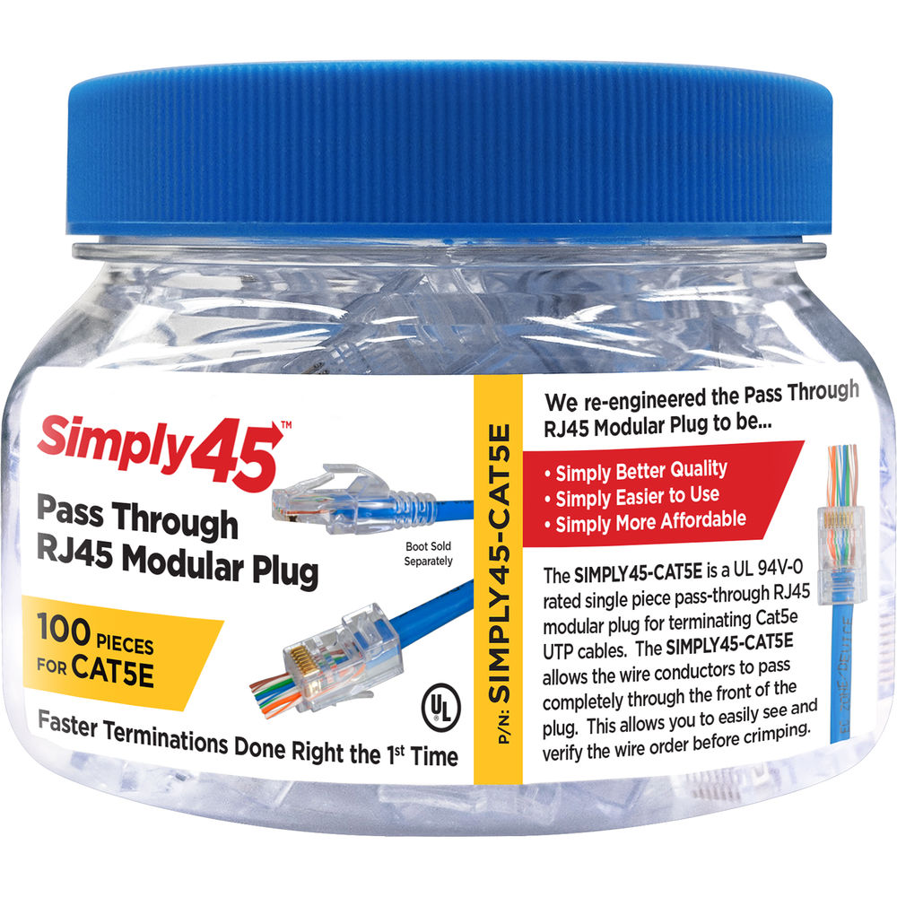 - Simply45 Cat 5e UTP Unshielded RJ45 Pass-Through Modular Plug (50-Pack)