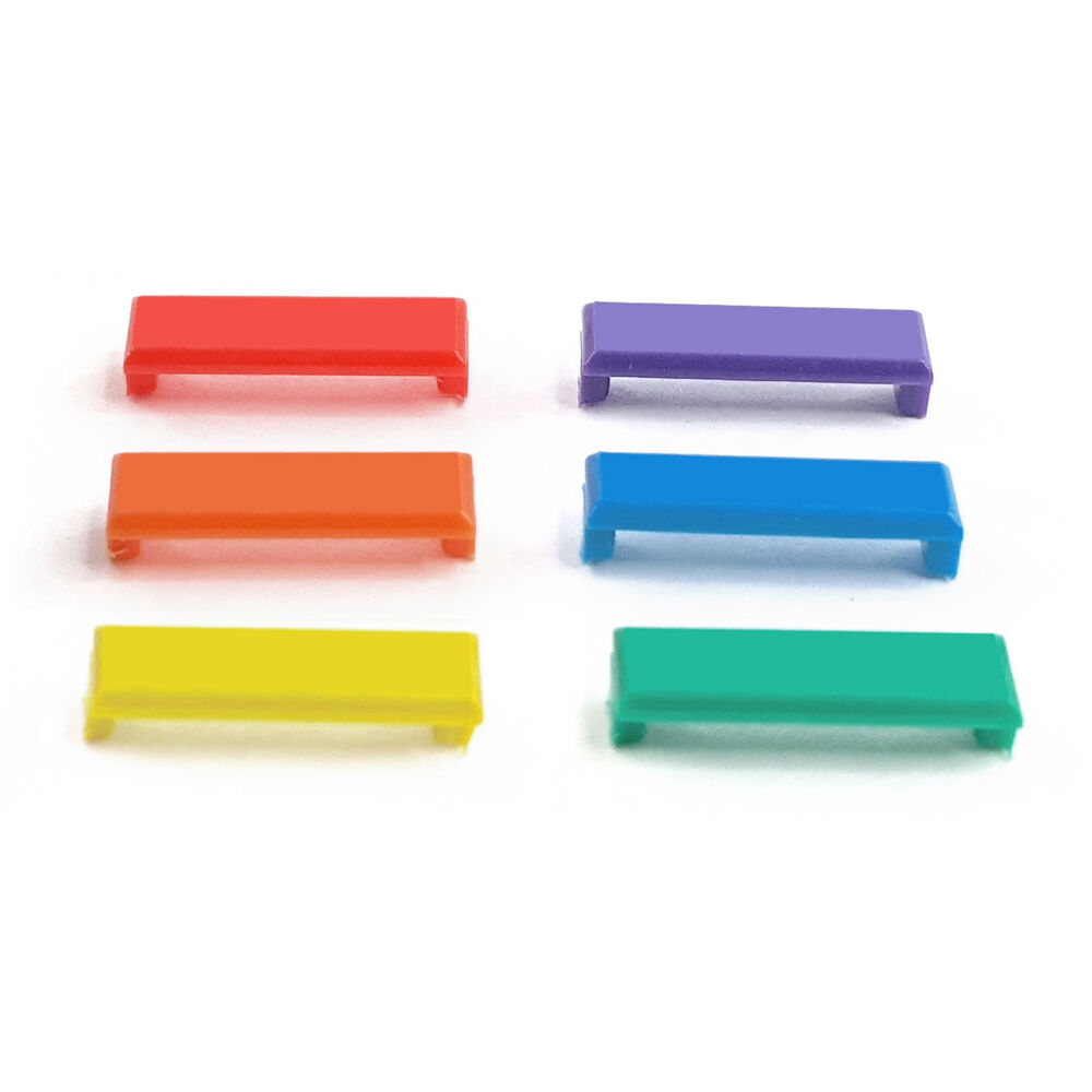 This set of Simply45 Keystone Snap-On ID Bars features six colored ID bars. Included are blue, green, orange, purple, red, and yellow ID bars.