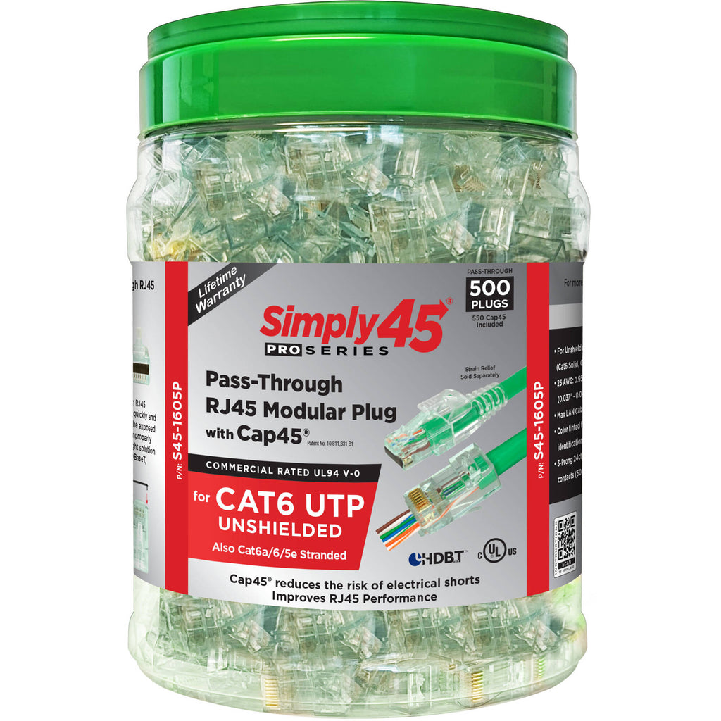 Simply45 S45-1605P ProSeries Cat6 Unshielded Pass-Through RJ45 Connectors with Cap45 (500 Count)