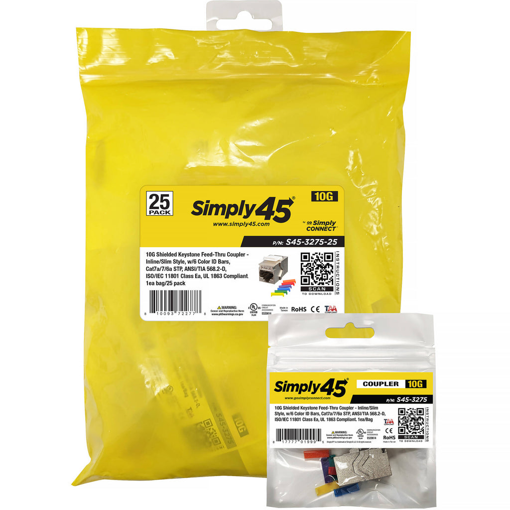 - Simply45 S45-3275 10G Shielded Keystone Feed-Thru Coupler (Nickel, 25-Pack)