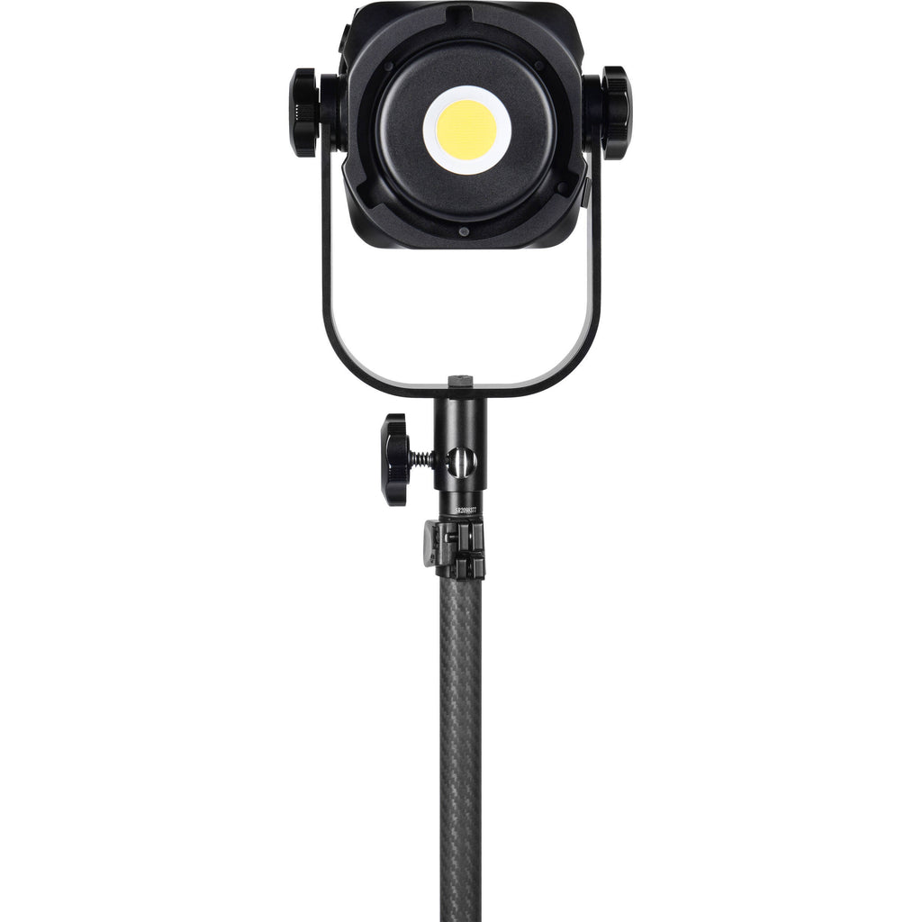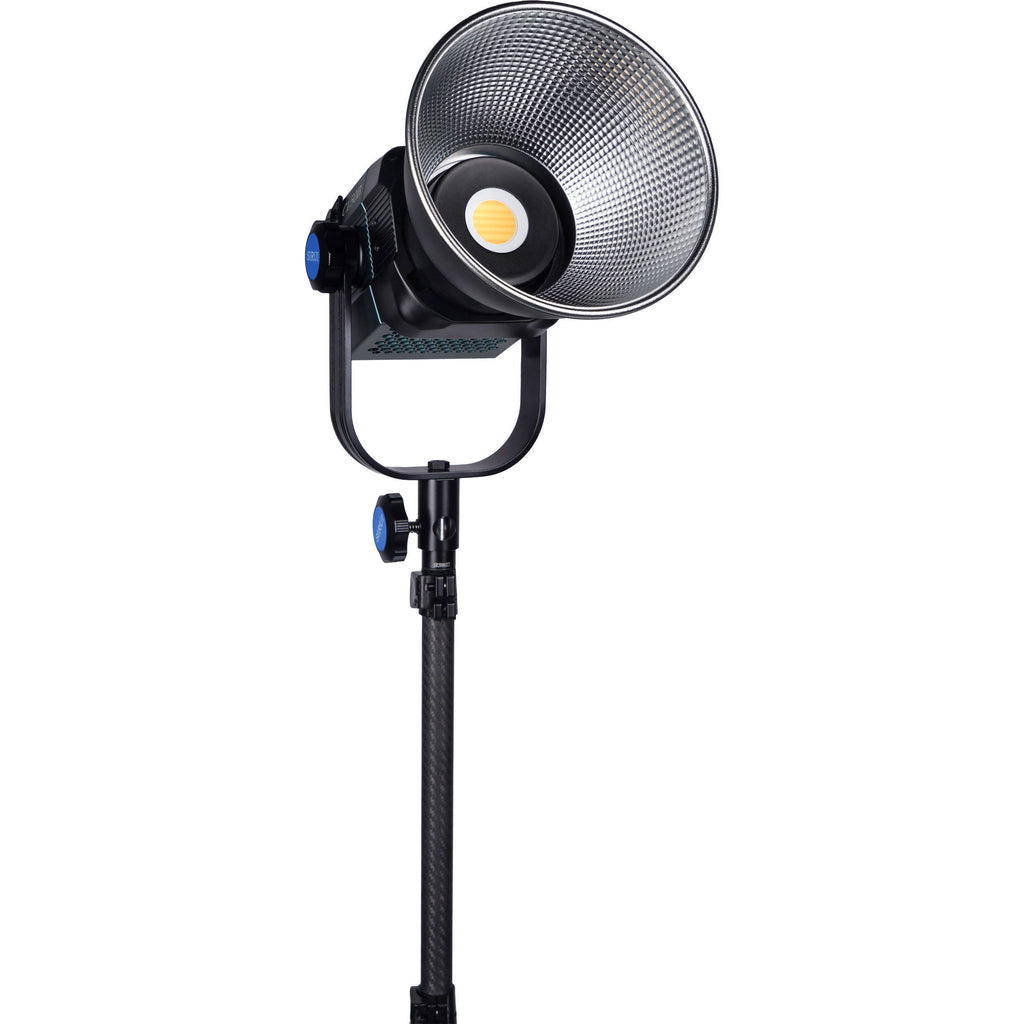 The light is designed with a Bowens S-mount for use with the included reflector and a wide range of other optional light modifiers, and twelve built-in special lighting effects including lightning, flash, broken bulb, candle, fire, fireworks, CCT loop, impulse, welding, TV, blast, and SOS. For mounting on a light stand, a flexible yoke with two locking knobs let you rotate the fixture 360°, and a convenient hand strap is also included for on-the-fly and handheld use. Designed for indoor and outdoor setups, the light is equipped with an AC adapter and power cord for continuous use with mains power, and for location shoots the light can be conveniently powered by one V-mount battery.