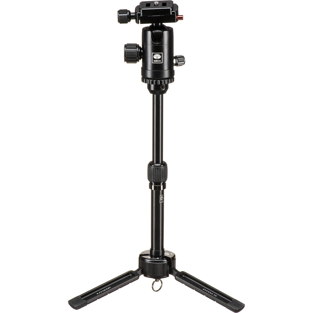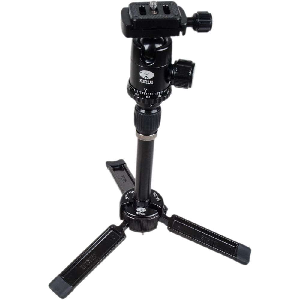 The black Sirui 3T-35K Table Top Tripod is a versatile camera support that can also be used as a handheld pole for video shots, selfies, or low- or high-angle shots. It can hold up to 8.8 lb, weighs just 15.2 oz, and reaches 13.4" with its two-section column fully extended. With the column removed and the head installed directly to the legs the tripod has a minimum height of just 4.5".