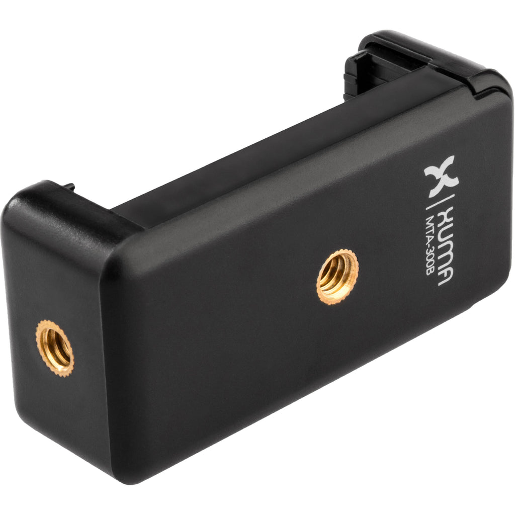 Take your smartphone photography to the next level with a Xuma Smartphone Mount . This mount fits devices 2.4 to 3.25" wide, holding them in place with a spring-loaded bracket with a rubber coating to protect your device's finish. It features three 1/4"-20 standard tripod threaded holes: one at the top, one at the bottom, and one on the back. This lets you mount your device to a tripod or monopod while still being able to attach 1/4"-20-compatible peripherals, like lights and microphones.