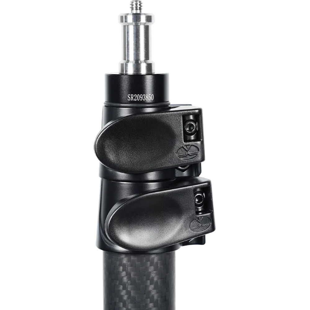This Carbon Fiber Air-Cushioned Light Stand from Sirui is a robust support that rises to a height of 9.2', has a wide footprint for stability, and easily folds down to 2.7'. The sturdy carbon fiber construction of the large circular tubes will safely support a generous load of 22 lb, which makes it ideal for heavy fixtures. The air cushion allows easy and comfortable raising or lowering of your mounted light and different accessories. Its flip-lock system allows quick setup and breakdown, while rubber feet give you extra stability. A standard 16mm spigot with a top 1/4"-20 screw is widely compatible with equipment and accessories.