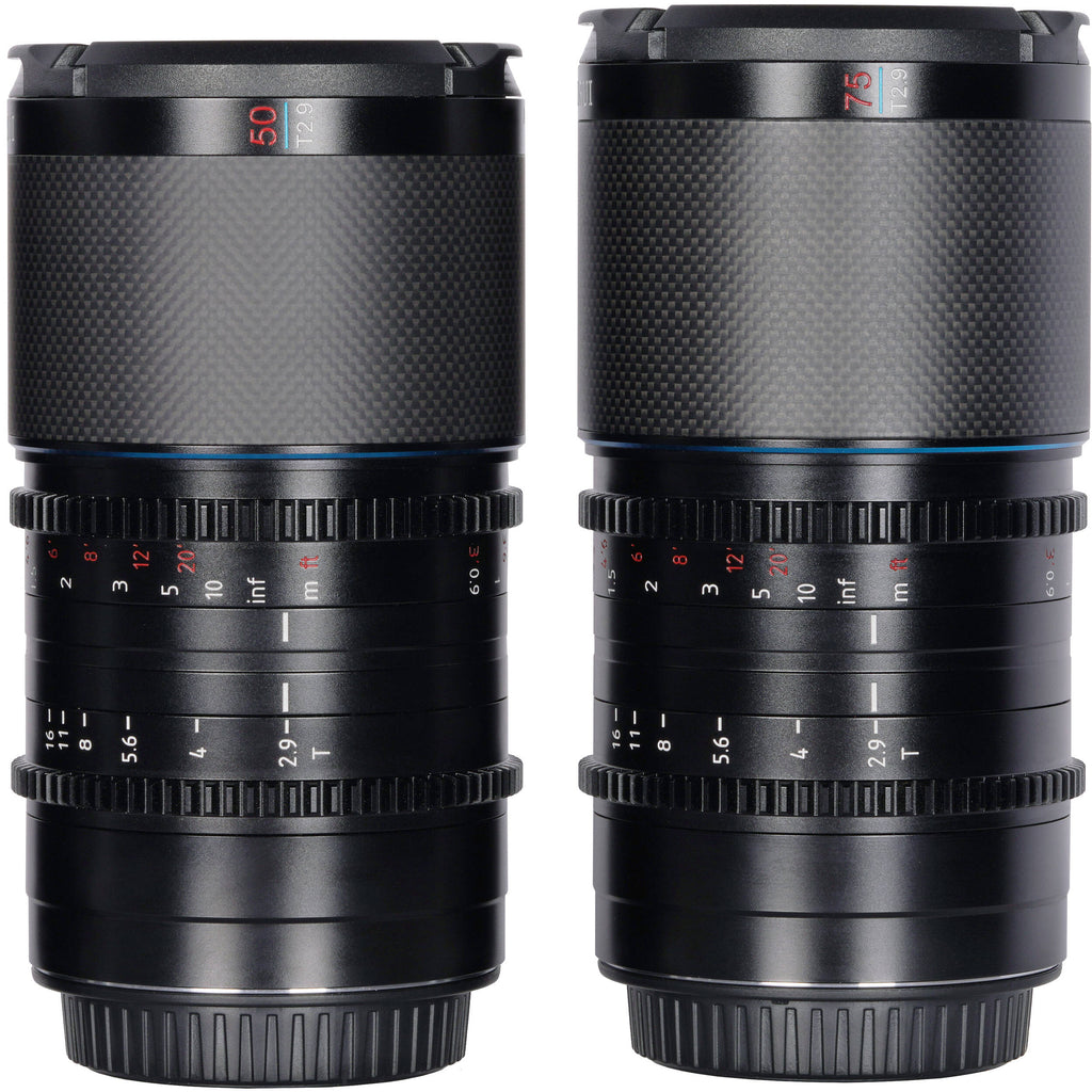Get a duo of medium to longer anamorphic looks for your Sony E-mount camera using the Saturn T2.9 1.6x Carbon Fiber Full-Frame Anamorphic 2-Lens Set from Sirui. This kit comprises 50 and 75mm 1.6x anamorphic primes with neutral flare effects for full-frame sensor cameras, a 58-62mm filter step-up ring, and a hard-shell carrying case. Read more below about the items in this set.