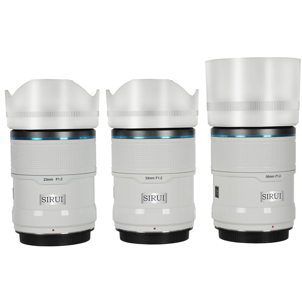 Equip your Sony E-mount mirrorless camera with the white Sniper f/1.2 Autofocus 3-Lens Kit from Sirui, which bundles all three focal lengths of the autofocus-enabled, ultra-fast primes for maximal coverage and versatility in both photography and videography applications.