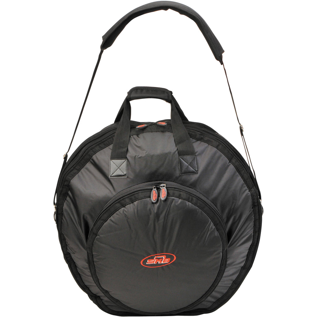 The black 22" Cymbal Gig Bag from SKB is a ballistic bag designed to safely hold approximately seven cymbals within its fully lined interior. Interior dividers separate each cymbal preventing them from rubbing against each other and causing damage. The dual zippers guard access to the contents and a double stitched shoulder strap makes portability easy. There are also top carry handles for an additional carrying option.