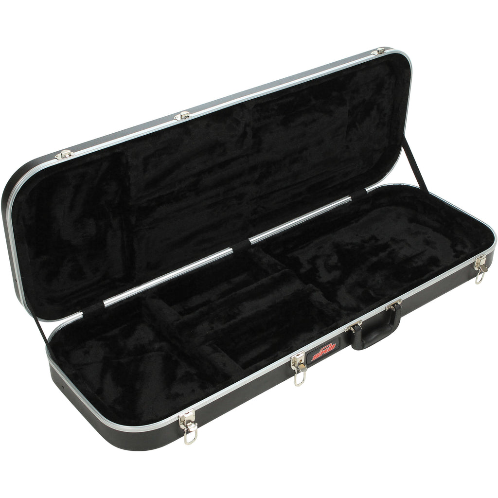 The Electric Guitar Economy Rectangular Case from SKB is designed to hold a variety of electric guitars. Part of the SKB Economy line of cases, this model features an EPS molded interior with an accessory compartment. The case's exterior includes molded-in bumpers and molded-in feet for added protection. The specification tab should be referred to for compatible guitar dimensions.