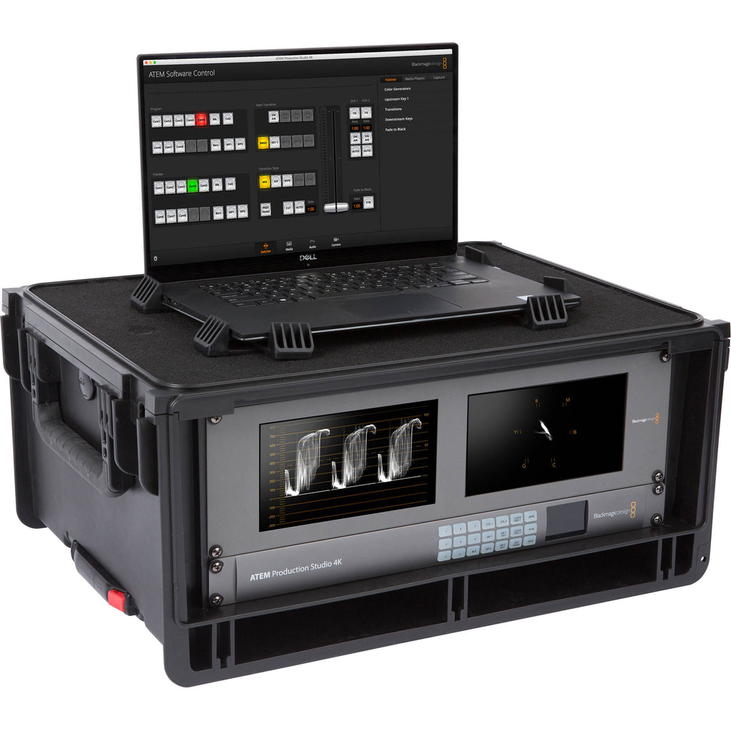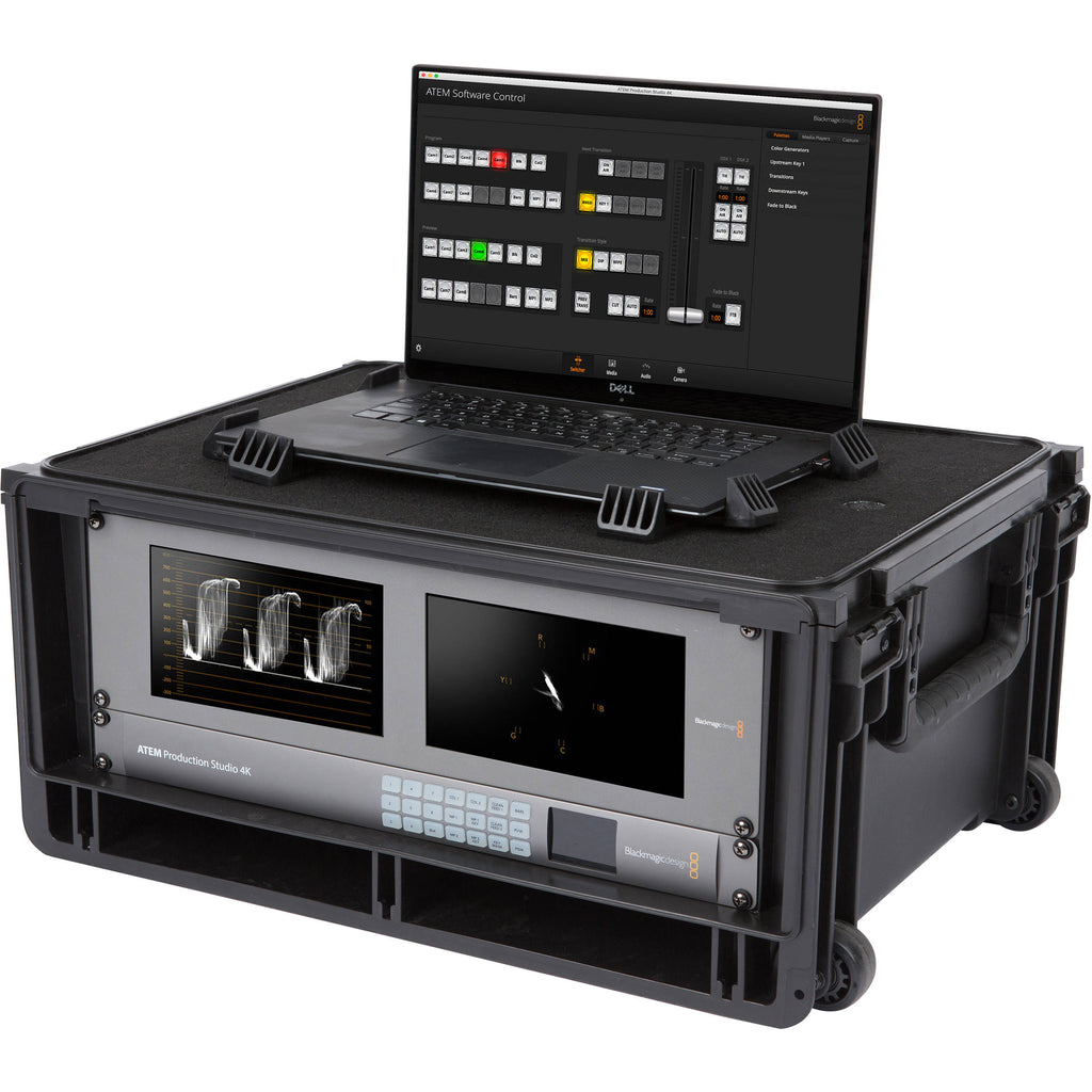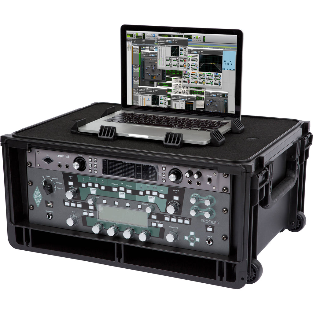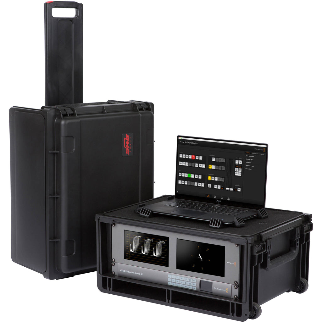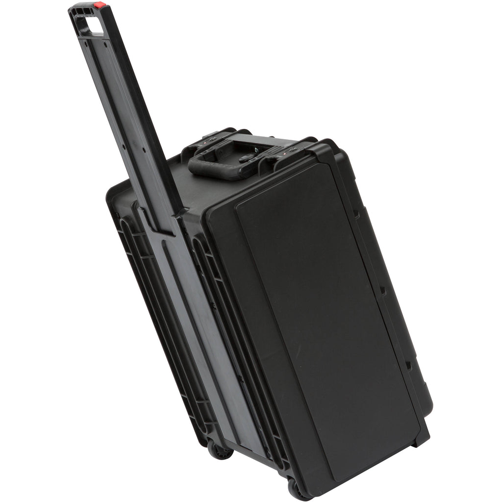 The 4-RU case's rackmounts measure 15" from front rail to rear rail to accommodate deeper equipment. It also provides a 21 x 15.5" adjustable work surface with ample room for laptops or monitors and is equipped with a molded exterior pattern that stacks securely with all SKB Roto Racks for maximum transport convenience. Other features include improved quiet-glide wheels, an easy-to-operate one-button pull handle, and TSA-accessible locking trigger latches.