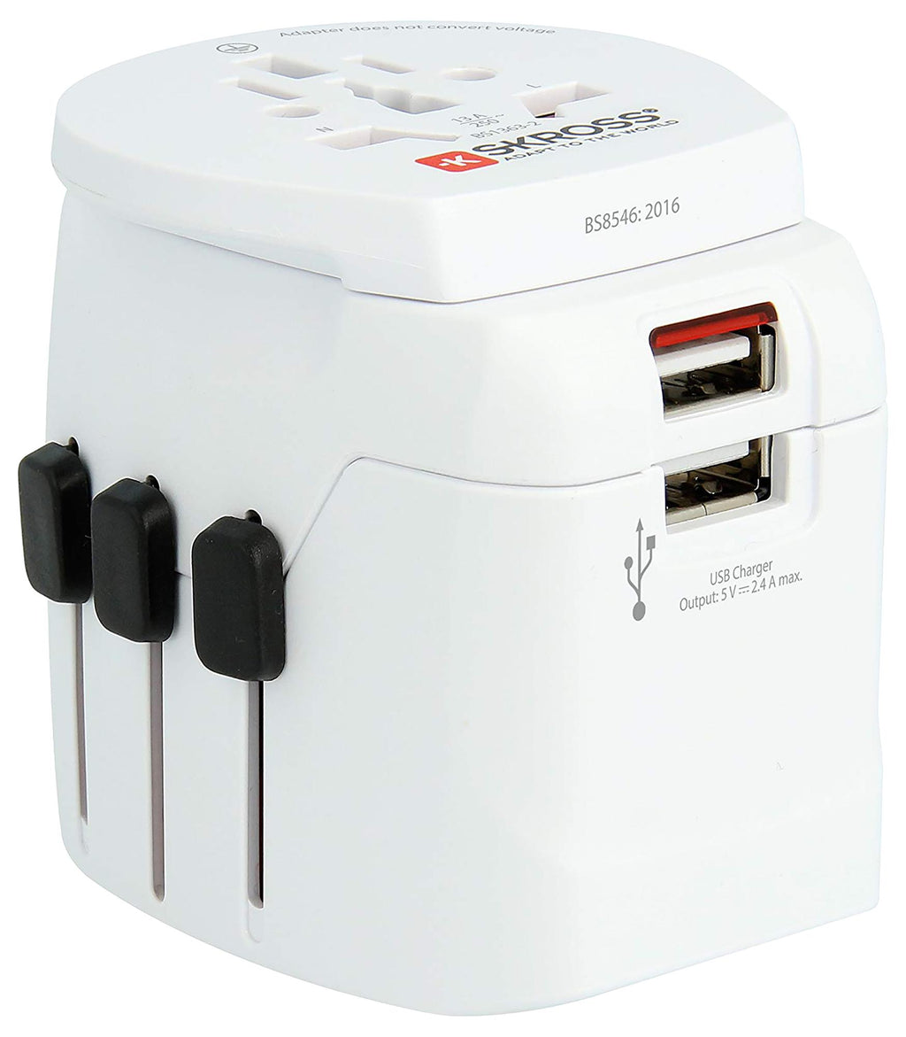 - Two USB ports enable simultaneous charging of your smartphone and tablet, while the adaptor can be used with an earthed device at the same time