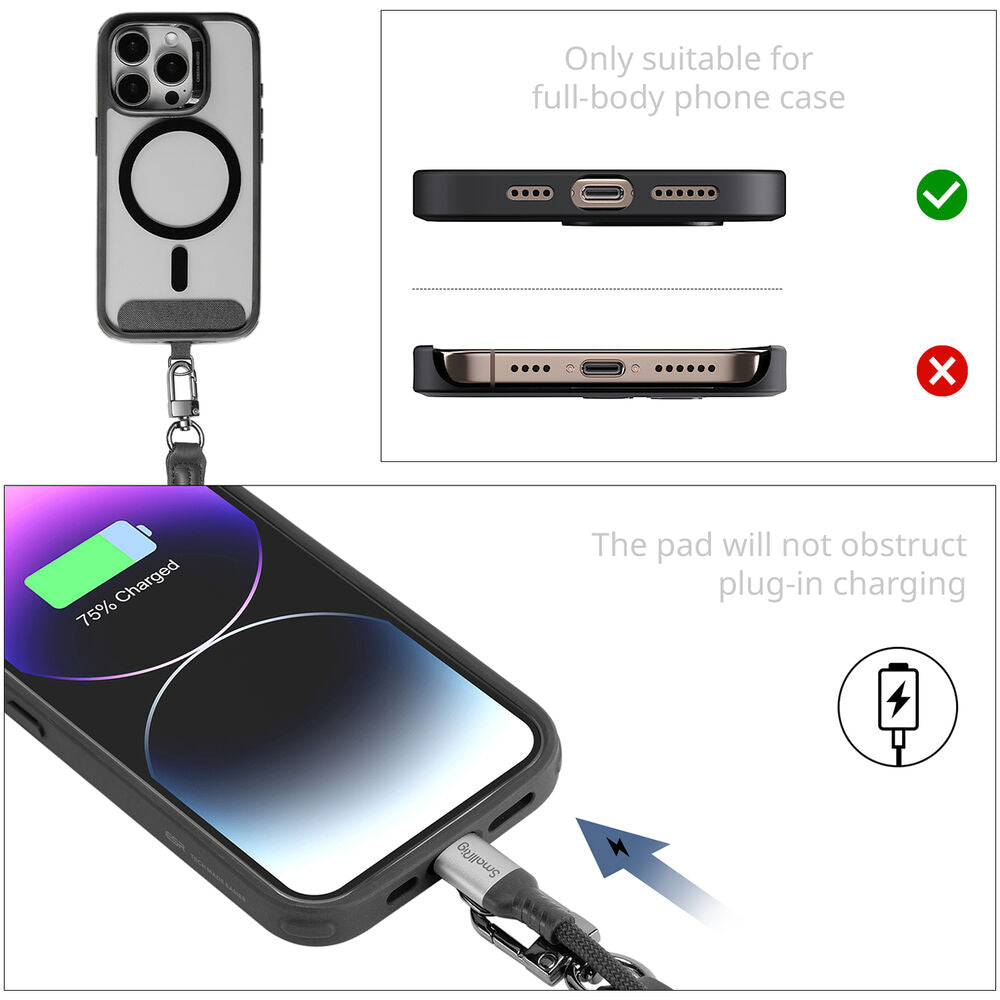 - Compatible with full-body phone cases or those with lanyard holes for unobstructed charging.