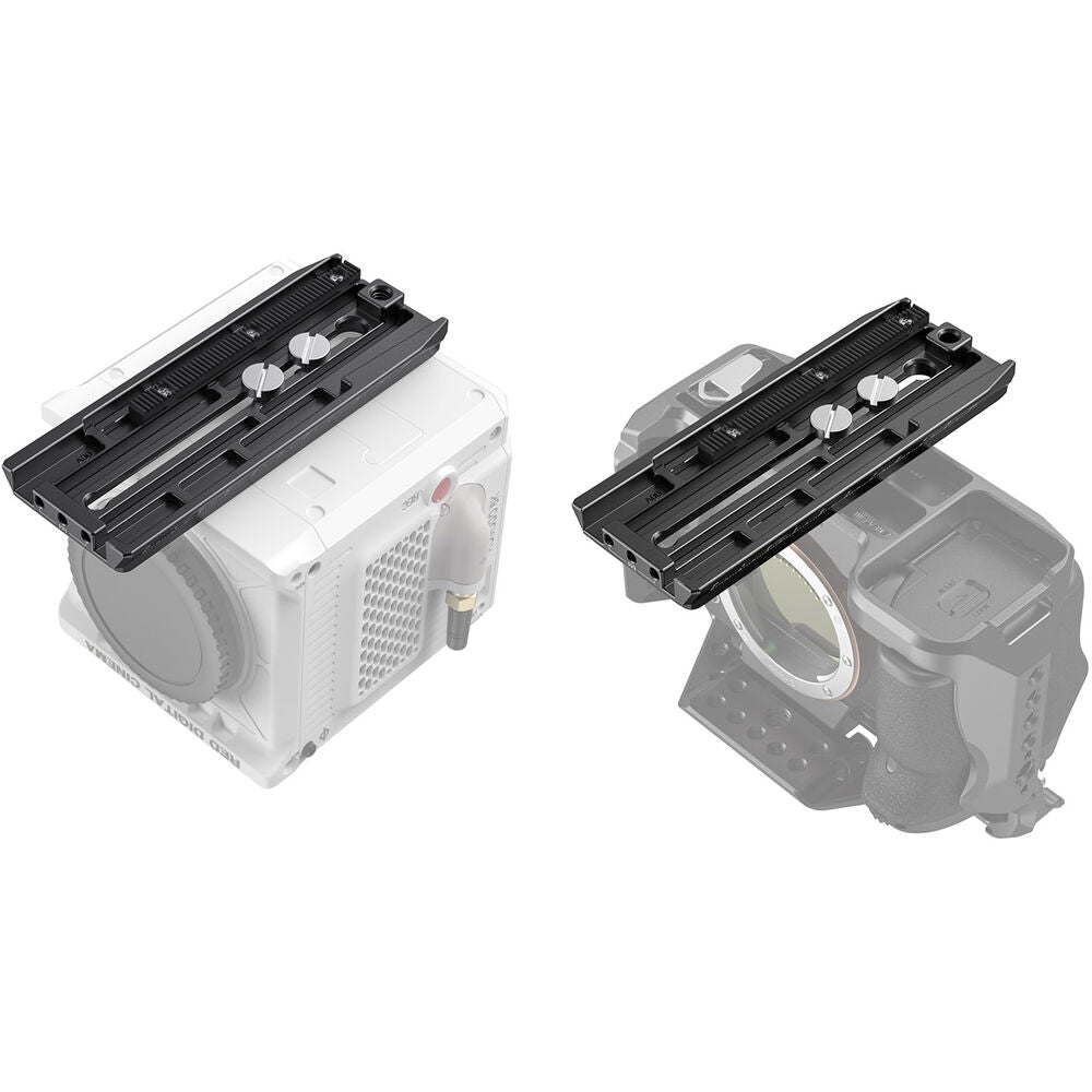 Mount accessories onto your DJI RS 2, RSC 2, or Ronin-S handheld gimbal stabilizer and balance your camera using this Manfrotto-Style Quick Release Plate from SmallRig. The durable aluminum and stainless steel plate measures 5.1" in length and is compatible with the gimbal's Manfrotto mount, as well as optional components such as a counterweight, lens support, or focus/zoom motor rod mount.