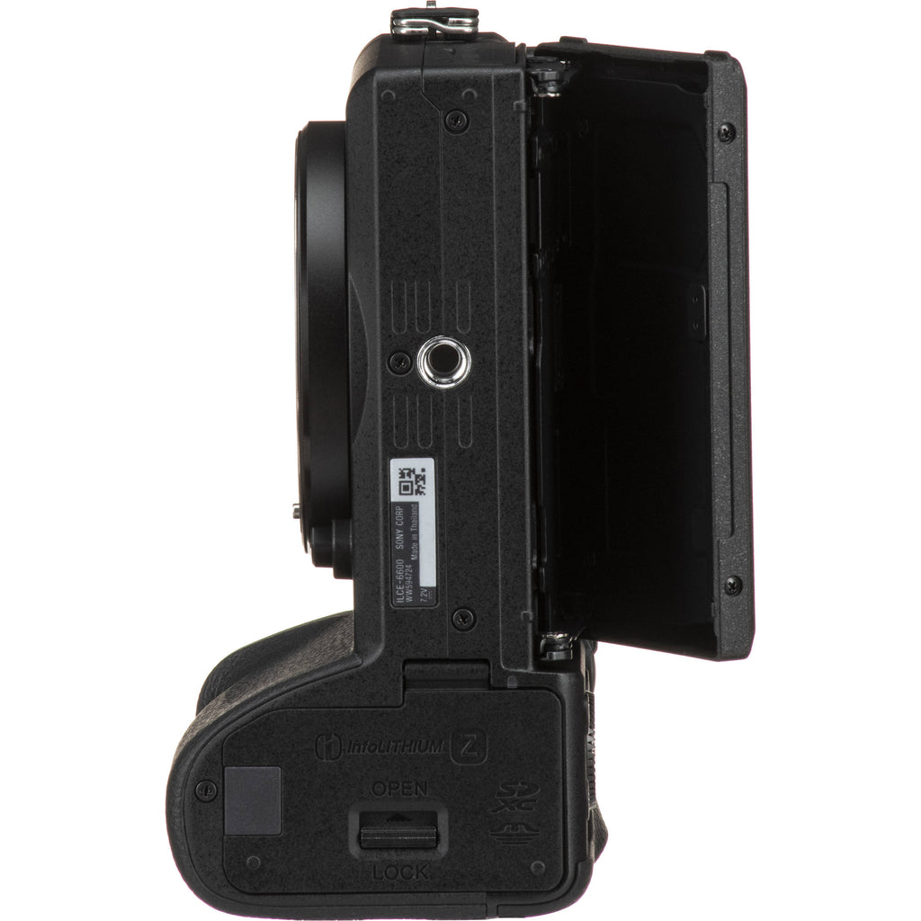Sony Alpha a6600 Mirrorless Digital Camera (Body Only) With an emphasis on speed and versatility, the Sony Alpha a6600 is a sleek-yet-fully-featured APS-C-format mirrorless camera well-suited for both stills and video. Sporting a revised 24.2MP CMOS sensor, the a6600 is capable of producing high-resolution photos and up to UHD 4K video with no recording time limit, more efficient processing, and faster focusing. The 4D FOCUS system, which covers 84% of the image frame, utilizes 425 phase-detection points along with 425 contrast-detection areas for especially quick and intuitive performance along with Real-time Eye AF for both photo and video. Complementing both stills and video, 5-axis SteadyShot INSIDE image stabilization minimizes the appearance of camera shake with all mounted lenses to support working with slower shutter speeds.