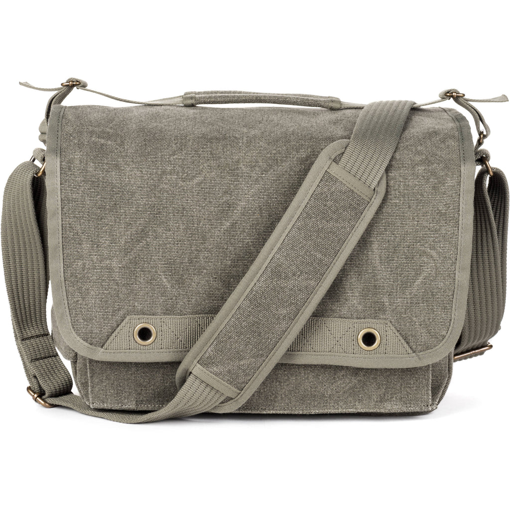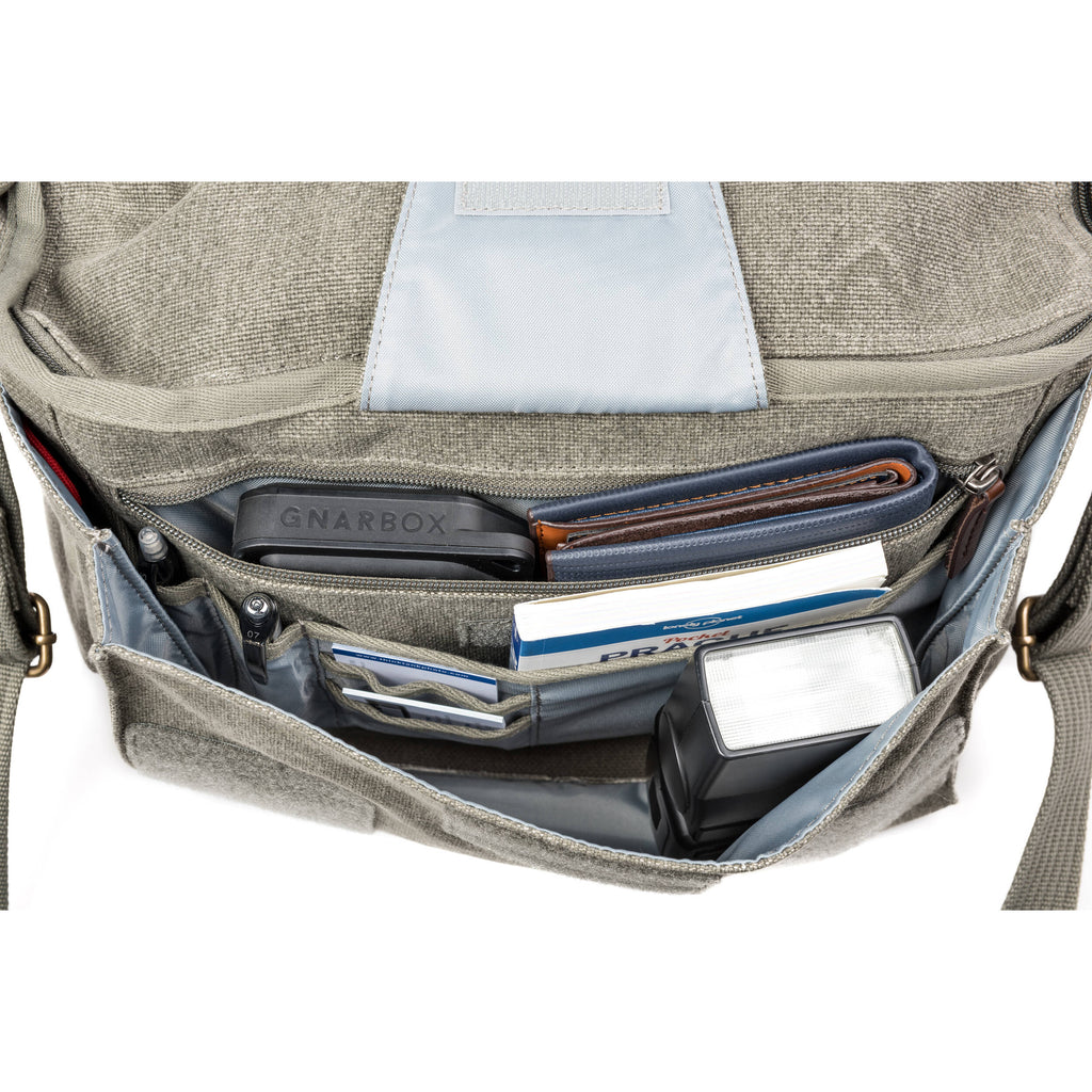 This handsome minimalist bag is designed to blend in and doesn't look like a camera bag. Made of durable cotton canvas that has been treated for water resistance, it has a large flap with dual turn buckles to keep it securely closed and an interior nylon lining padded with closed-cell foam for protection. The main compartment has padded touch-fastening PE-reinforced dividers for organizing your gear. A large pocket under the flap will hold and organize memory cards, cables, your wallet, keys, and other smaller gear.