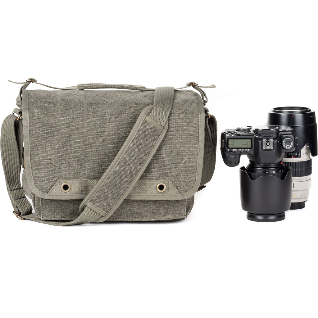 This handsome minimalist bag is designed to blend in and doesn't look like a camera bag. Made of durable cotton canvas that has been treated for water resistance, it has a large flap with dual turn buckles to keep it securely closed and an interior nylon lining padded with closed-cell foam for protection. The main compartment has padded touch-fastening PE-reinforced dividers for organizing your gear. A large pocket under the flap will hold and organize memory cards, cables, your wallet, keys, and other smaller gear.