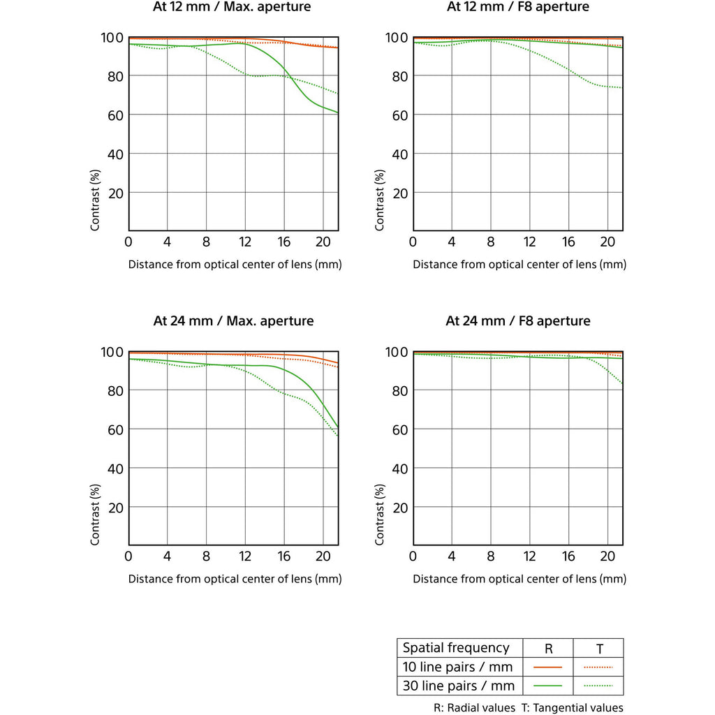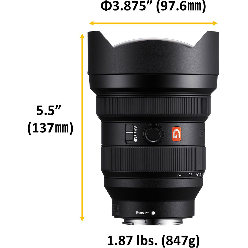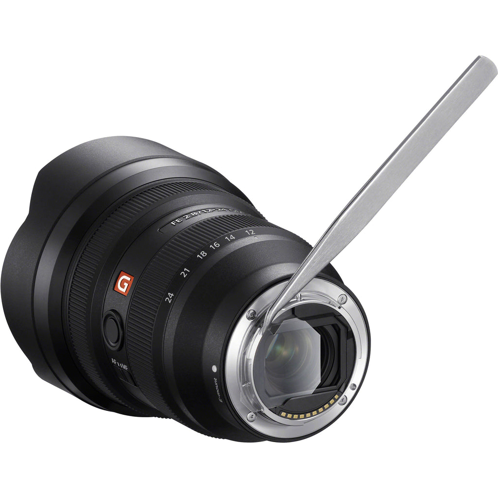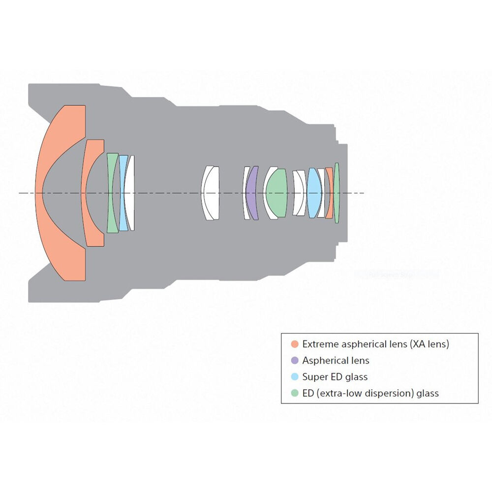 As part of Sony's esteemed G Master series, this lens is designed to achieve notably high resolution and sharpness through the correction of a wide variety of spherical and chromatic aberrations. Additionally, these lenses feature robust and intuitive-to-handle physical designs to benefit both photography and cine applications. Versatile ultra-wide-angle zoom is designed for full-frame Sony E-mount mirrorless cameras, however can also be used on APS-C models where it provides an 18-36mm equivalent focal length. Bright f/2.8 constant maximum aperture benefits working in difficult lighting conditions and also affords increased control over depth of field. Three XA (extreme aspherical) elements, and one standard aspherical element, are incorporated into the optical design, which features superior surface precision for effective control over astigmatism, field curvature, coma, distortion and other spherical aberrations for a high degree of sharpness and accurate rendering. Two Super ED elements and three extra-low dispersion elements are featured in the lens design and help to reduce chromatic aberrations and color fringing for improved clarity and color neutrality. Nano AR Coating II has been applied to reduce surface reflections, flare, and ghosting for increased contrast and color rendering in strong lighting conditions. This updated coating is better suited for larger, curved elements and is especially adept at minimizing internal reflections. Floating focusing system divides the focus group into two separately controlled groups and helps to maintain consistently clear optical performance throughout the zoom and focus ranges. An XD Linear Motor system uses four separate motors�two per focusing group�along with an internal focusing design to provide quick, quiet, and precise autofocus and tracking performance. This design also contributes to more natural, intuitive Linear Response manual focus control and an AF/MF switch is located on the lens barrel for tactile control over this setting. A focus hold button is present on the lens barrel for intuitive tactile control and rapid access to select settings. Minimum focusing distance of 11" is available throughout the zoom range. Dust- and moisture-sealed design better permits working in inclement conditions and rubberized control rings benefit handling in colder temperatures. Fluorine-coated front element resists dust, moisture, and fingerprints and is easy to clean. Rounded nine-blade diaphragm contributes to a pleasing bokeh quality when employing shallow depth of field techniques. Integrated petal-shaped lens hood helps to block stray light from causing lens flare and also affords some physical protection to the front element. Filter holder is incorporated at the rear of the lens, within the lens mount, and accepts cut gel filters and a filter cutting template is included. UPC: 027242916159Focal Length | 12 to 24mm |