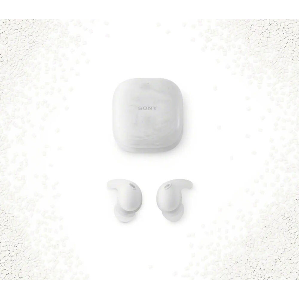 Sony is committed to preserving the Earth while delivering superior sound quality. With a goal of achieving a zero environmental footprint by 2050, Sony is accelerating green initiatives. The LinkBuds Fit earbuds and charging case incorporate recycled plastic materials, and the packaging contains no plastic, reflecting Sony's dedication to reducing environmental impact.