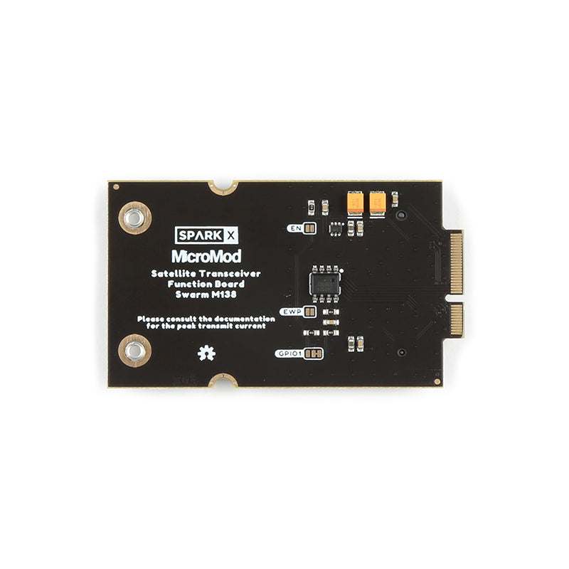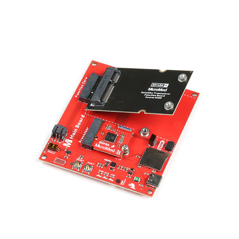 The SparkX Swarm MicroMod Function Board is an adapter board which allows you to add Swarm Satellite connectivity to your MicroMod project. It is designed to be plugged into the MicroMod Main Board - Single or MicroMod Main Board - Double. You can then install the Swarm M138 satellite modem and communicate using our dedicated Swarm Satellite Arduino Library. It's a perfect solution, allowing you to create a satellite-enabled MicroMod Tracker or Data Logger using your favourite processor!