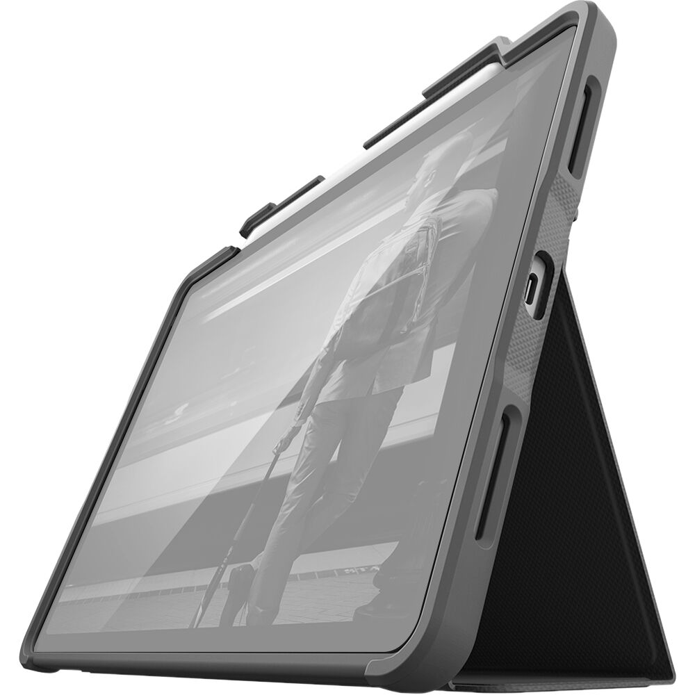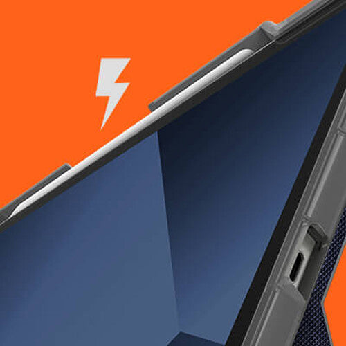 Protect your Apple 12.9" iPad Pro (3rd to 6th Gen) with the STM Dux Plus Case. Tested to meet MIL-STD-810H standards, the Dux Plus can withstand the bumps and drops of classroom, workplace, and airports. There is even a storage spot for the Apple Pencil that supports wireless charging. The STM patented magnetic closure and transparent back allows for easy customization. The folding cover protects the screen when not in use and can double as a stand.