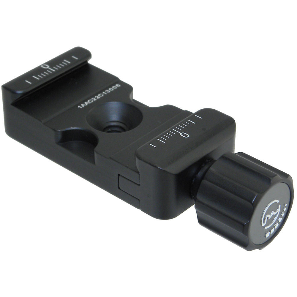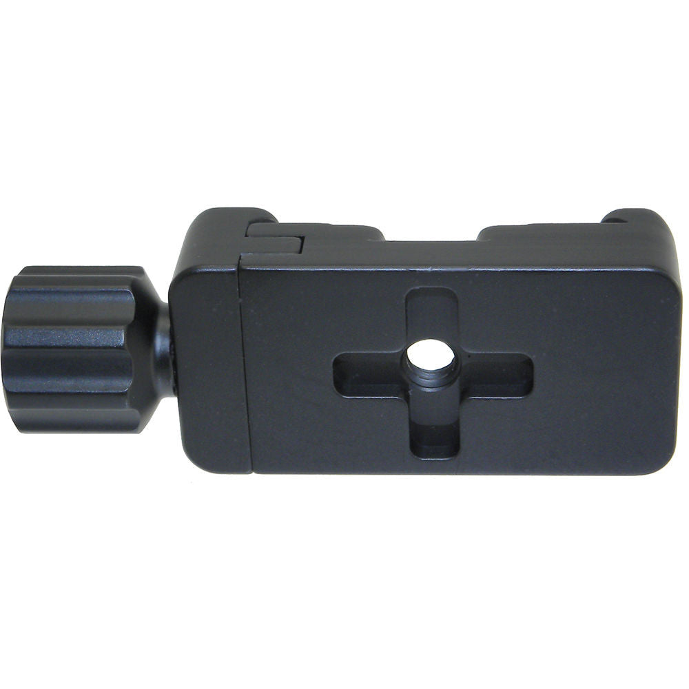 The DDC-26 Mini Screw-Knob Clamp from Sunwayfoto is an all-metal, Arca-swiss style clamp that attaches to tripod heads via its 1/4"-20 mounting hole and included 5mm screw. Its jaw opens with a range of 38-41.5mm and its captive-design knob locks tightly to secure your camera. Designed with a "+" shaped mounting groove on the bottom, its orientation can be changed to fit quick release plates set in either direction and it can be perpendicularly attached to a second DDC-26 and used on a rail mount. Two safety relief grooves help to keep your camera secure.
