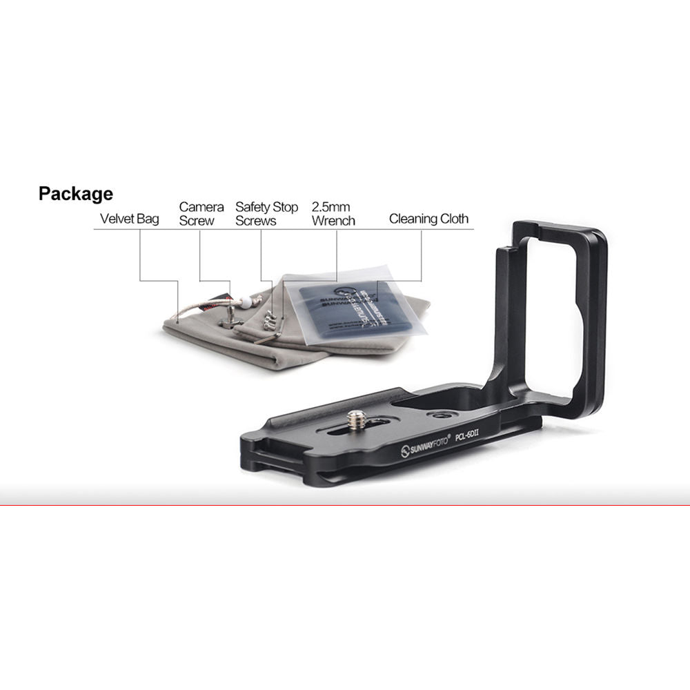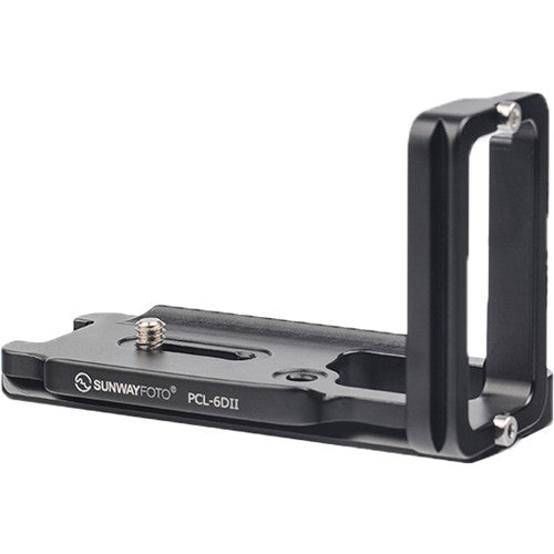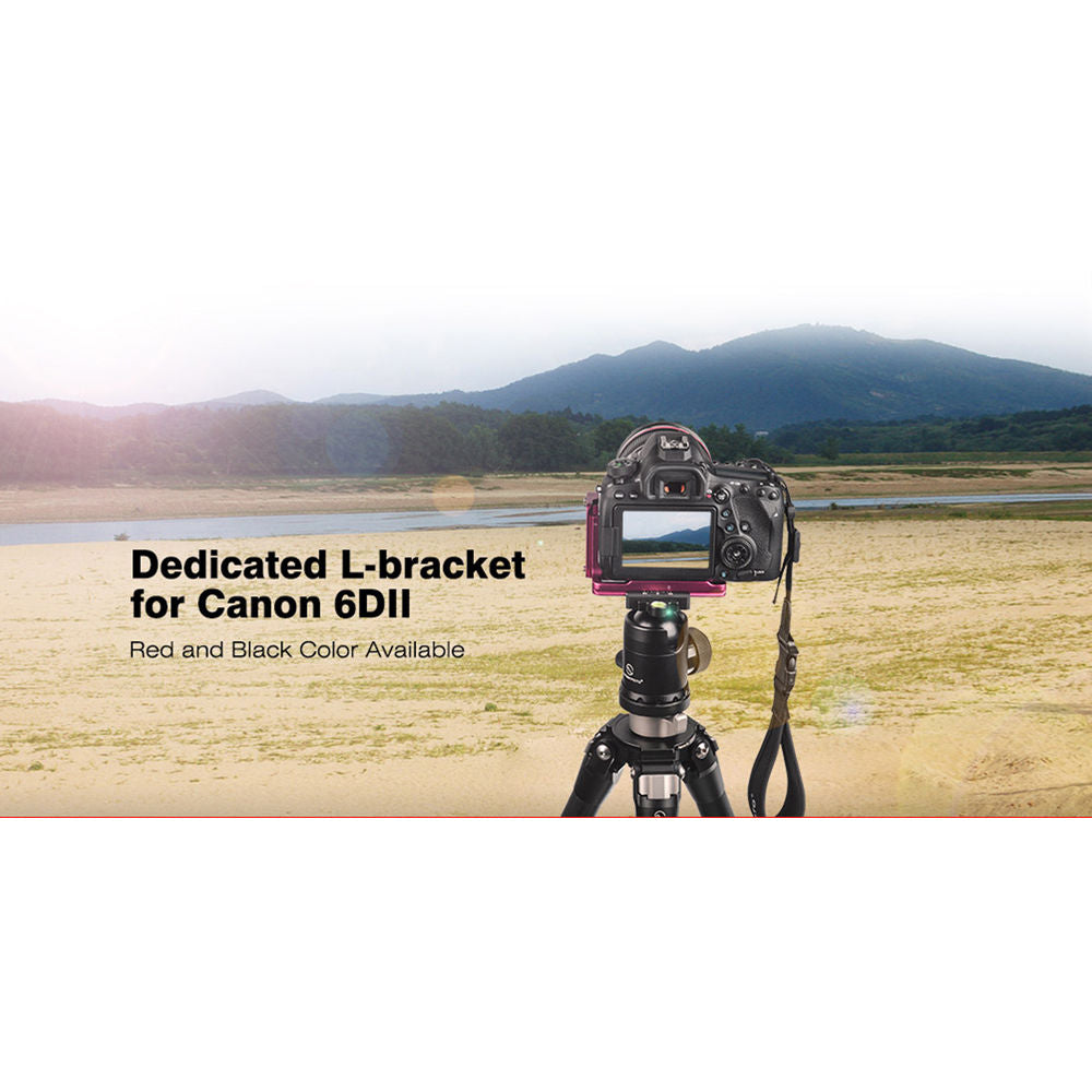 The Dedicated L-Plate for Canon 6D Mark II from Sunwayfoto has a CNC machined T6061 aluminum one-piece design and Arca-type compatible dovetail mounts. It can be mounted in a vertical or horizontal orientation on a tripod head without losing your center of axis. The L-plate's surface has a durable Type III black anodized finish that can withstand everyday use.