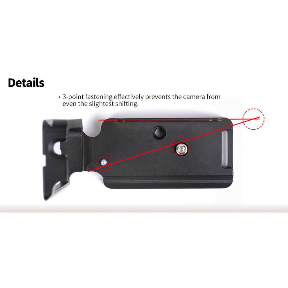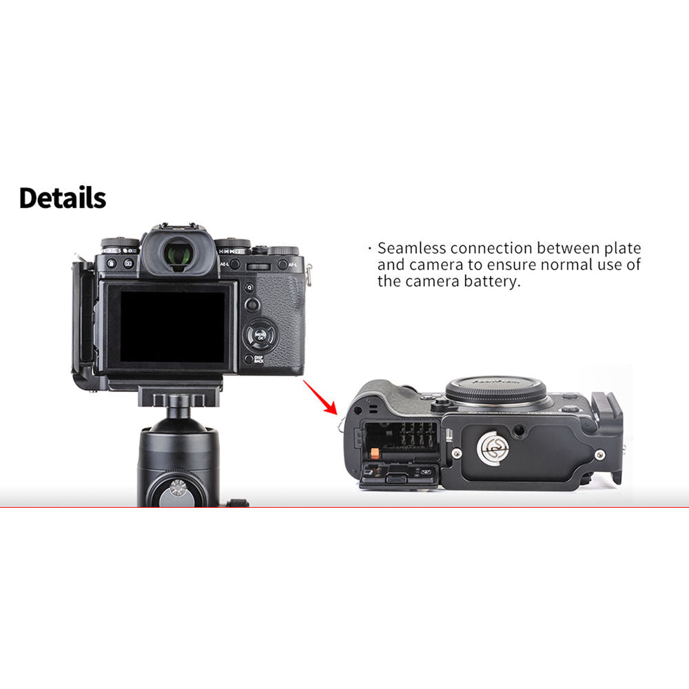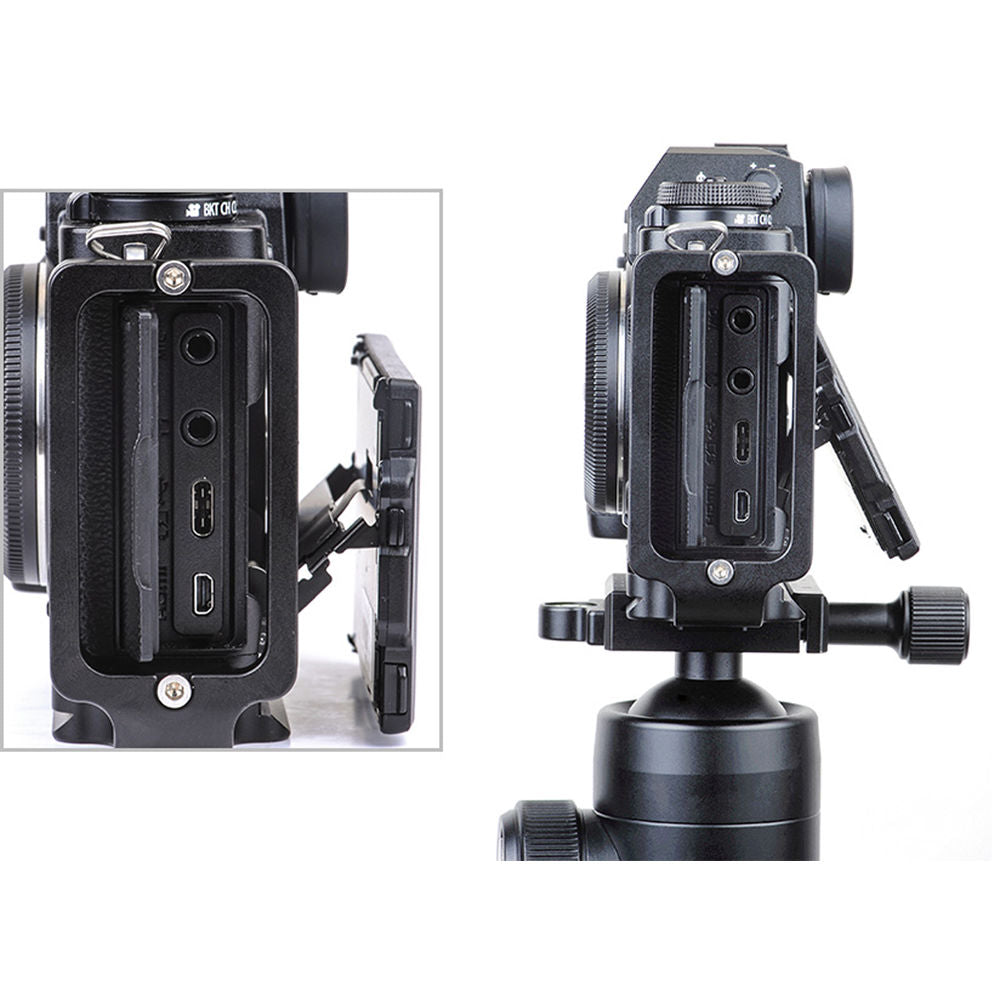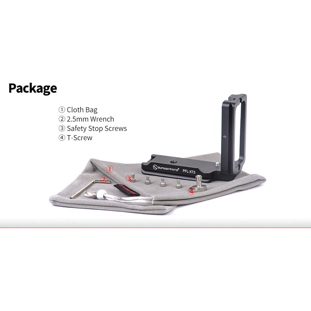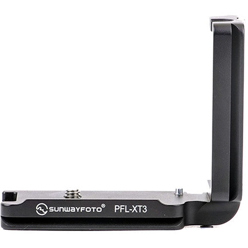 The PFL-XT3 Custom L-Bracket for FUJIFILM X-T3 from Sunwayfoto is a single-piece design that is CNC machined from T6061 aluminum with a Type-III hard-anodized finish for durability. The Arca-type L-bracket can mount in both a vertical or horizontal orientation, and dual safety stops are located on the bottom of each axis as a precaution against the L-bracket from sliding out if the quick release clamp is partially opened by accident.