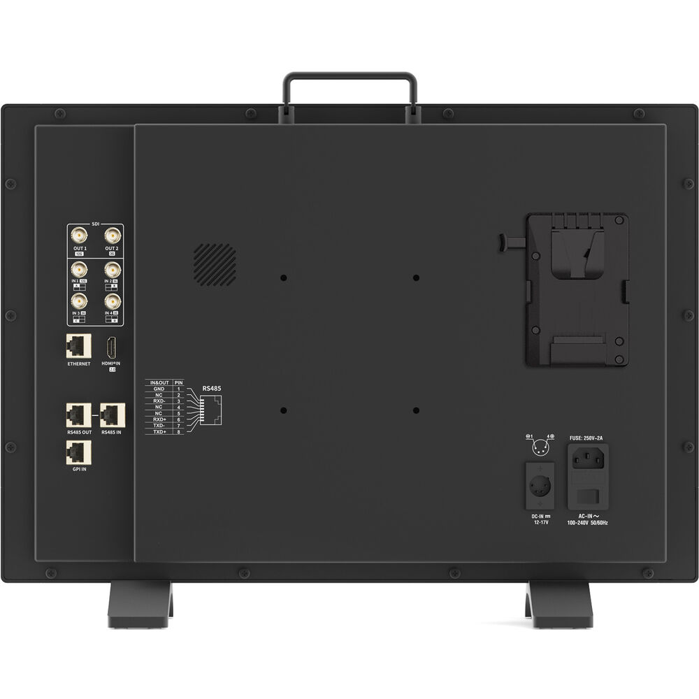 There are quad 3G-SDI inputs, one 12G-SDI input, and one HDMI 2.0 input on the back of the monitor.