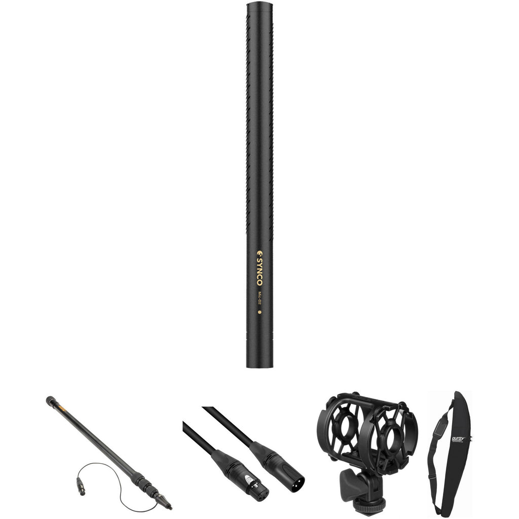 This Synco Mic-D2 Hypercardioid Shotgun Microphone Boom Kit with Boompole & Accessories from bundles together the essential elements required for using the Mic-D2 as a boom mic. In addition to the lightweight, phantom-powered hypercardioid microphone, the kit provides a lightweight boompole with an internal XLR cable and adjustable twist locks that allow for up to 7.5' of extension. Also included is a universal shockmount, a 10' XLR cable to connect to your recording device, and a neoprene boompole bag for travel and storage.