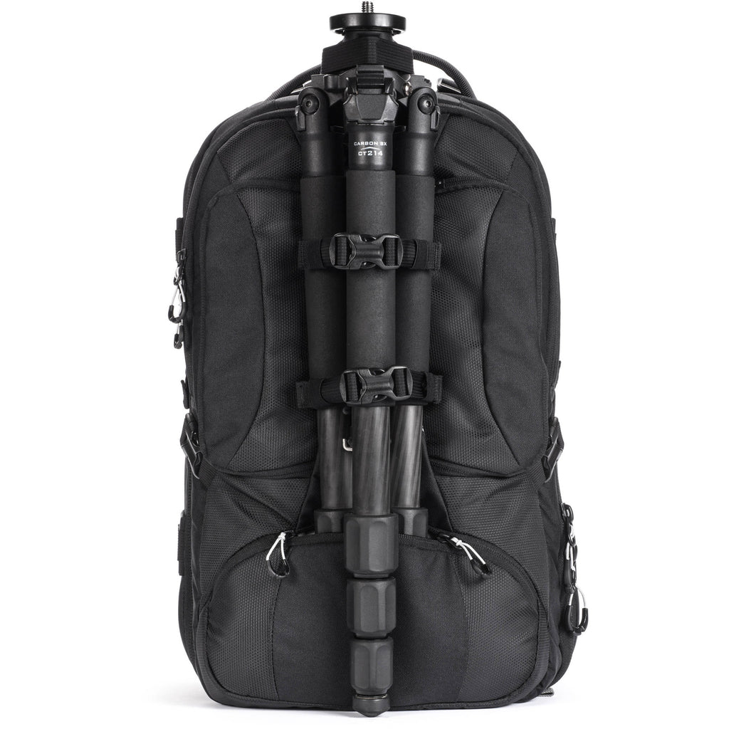 Two, removable, adjustable, quick-release straps on the front of the pack are used for securing the legs of a pro-sized tripod, and work together with a lower accessory pocket, which is used for holding the tripod feet. Carry your Anvil 27 Backpack with the padded, grab handle or shoulder harness. For comfort and stability, the harness features padded, adjustable shoulder straps with a connector. On longer journeys, photographers will appreciate the added comfort provided by the removable hip belt. Both the hip belt, and the side of the pack have M.O.L.L.E System attachment points. In the event of bad weather, simply deploy the form-fitted rain cover.