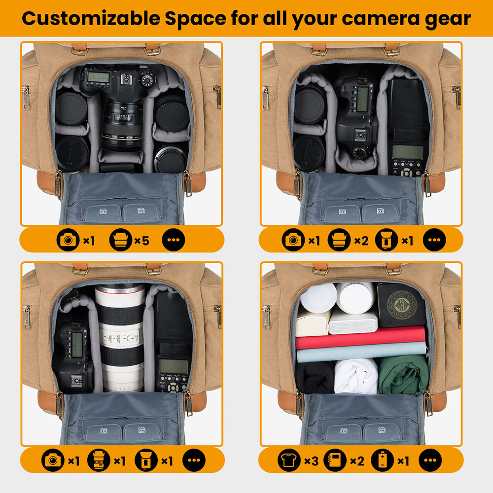 - TARION M02 Canvas Camera Backpack (Khaki, 14.5L)