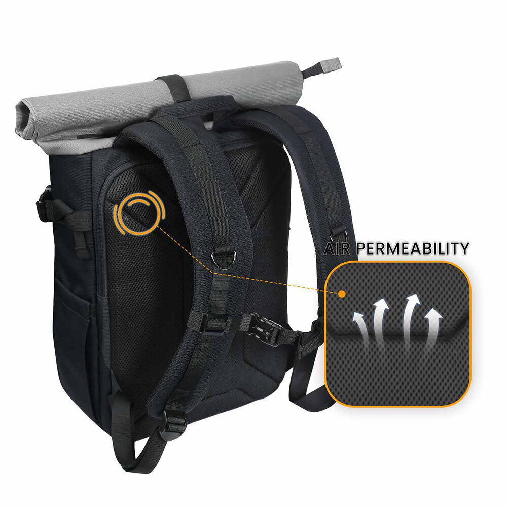 - Rear panel and straps have air mesh padding for comfort
