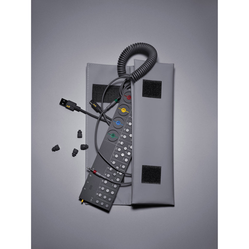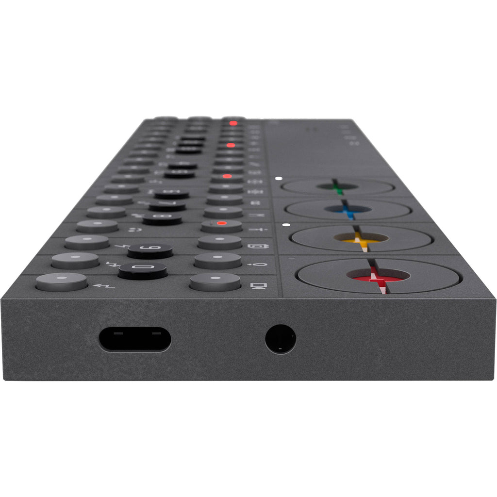 An updated tape feature secretly records everything that is programmed into the sequencer in real time. With its own dedicated track, it is possible to sequence the tape and trigger the in-point, length, and speed. There are several different tape reels with different characters, which allow you to scrub, scratch, wind-up, and mess-up any programming. The OP-Z ships with a USB charging and control cable.