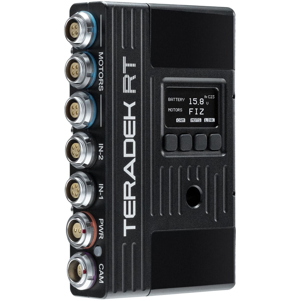 For precise lens control with your Teradek RT motors and receivers, the Teradek CTRL.3 Three-Axis Wireless Lens Controller can control focus, iris, or zoom with ease. The CTRL.3 has an outdoor wireless range of 5000' and an indoor wireless range of 500'. You can also use the included 5-pin monitor interface cable to connect directly to a monitor.