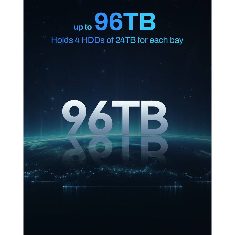 The U4-500 can accommodate up to four 3.5" SATA hard drives, offering a remarkable maximum storage capacity. This is sufficient to meet the backup and storage needs of most small- and medium-sized enterprises. Additionally, through the 10 Gb/s USB 3.2 Gen 2 interface, the U4-500 can easily connect to external USB storage devices, enabling further storage expansion. For example, when used with the TerraMaster D6-320, it can increase storage capacity to meet your ever-growing data storage demands with an additional six drive bays.