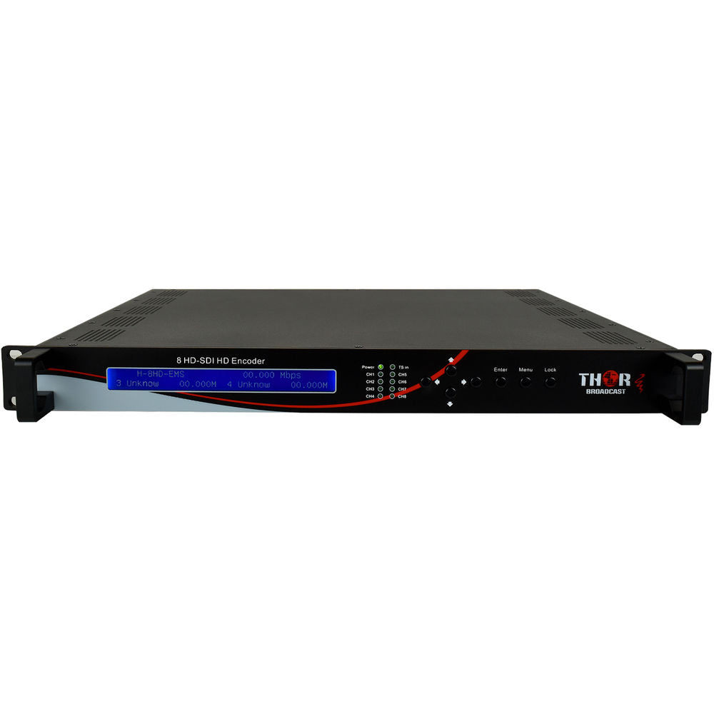 The 8-Channel HD-SDI Broadcast Encoder with IPTV Streamer from Thor converts eight channels of HD-SDI content input to ASI and IP outputs. Each of the eight encoders can be independently configured for bit rate and PID management. The encoder supports bit rates up to 19 Mb/s per channel. With high-level H.264 codec-based encoding, it is suitable for reducing the rack space required for HD program encoding for content source origination and distribution.