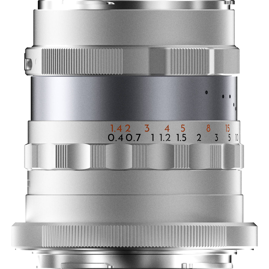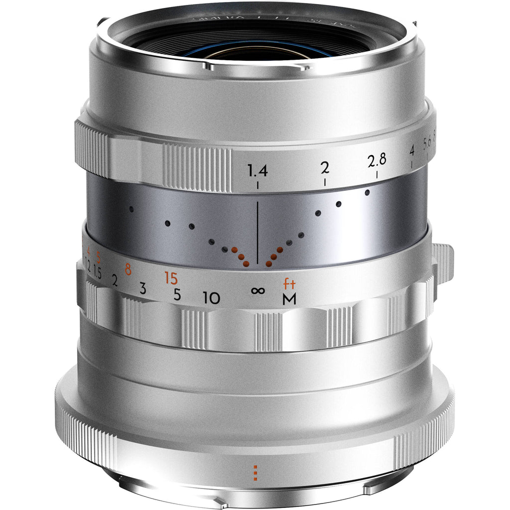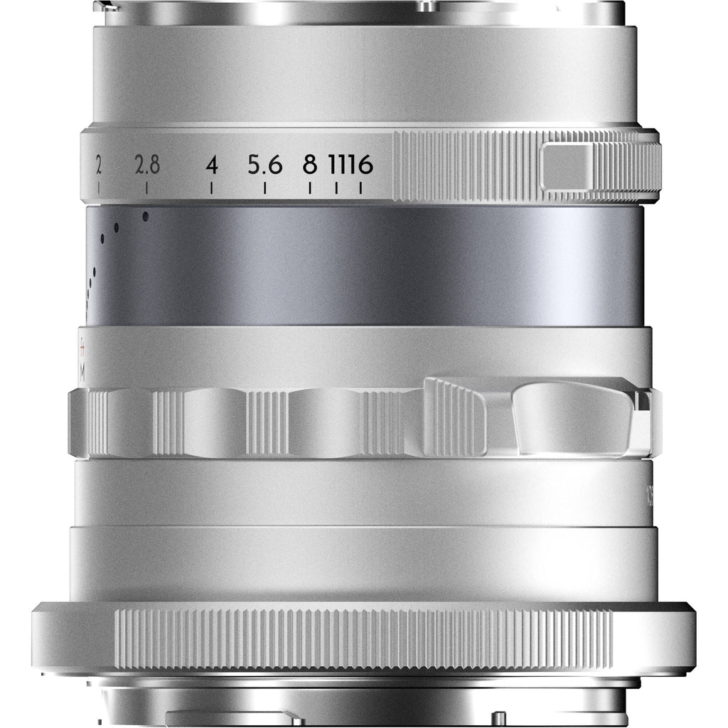 Designed in homage to the legendary Kern Macro-Switar lens for Alpa 35mm cameras, the silver Nikon Z-mount Thypoch Simera 28mm f/1.4 Lens puts its bright, low-light friendly optics into a sleek aluminum housing for high-quality imagery in a wide range of shooting scenarios. Its large aperture also enhances depth of field effects like bokeh and subject-background separation. Featuring a declickable aperture ring and a grooved focus tab, the lens' manual focus design is both tactile and wieldy. The optical design features an extra-low dispersion element, two high-refractive index elements, and an aspherical element for clarity from the center to edge of the frame.
