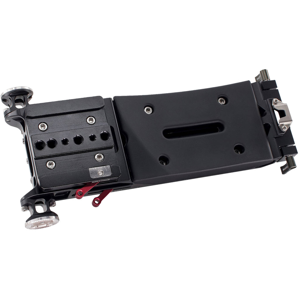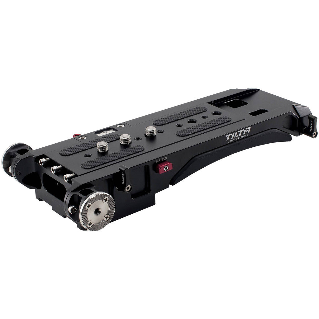 The Tilta 15mm LWS Quick Release Baseplate for VariCam 35 is designed expressly for the Panasonic camera and enables you to quickly switch between VCT-14 tripod-based shots and handheld capture. The baseplate features front and rear 15mm LWS rod brackets, an integrated shoulder pad for comfort, and ARRI standard rosettes for attaching separately available handgrips.