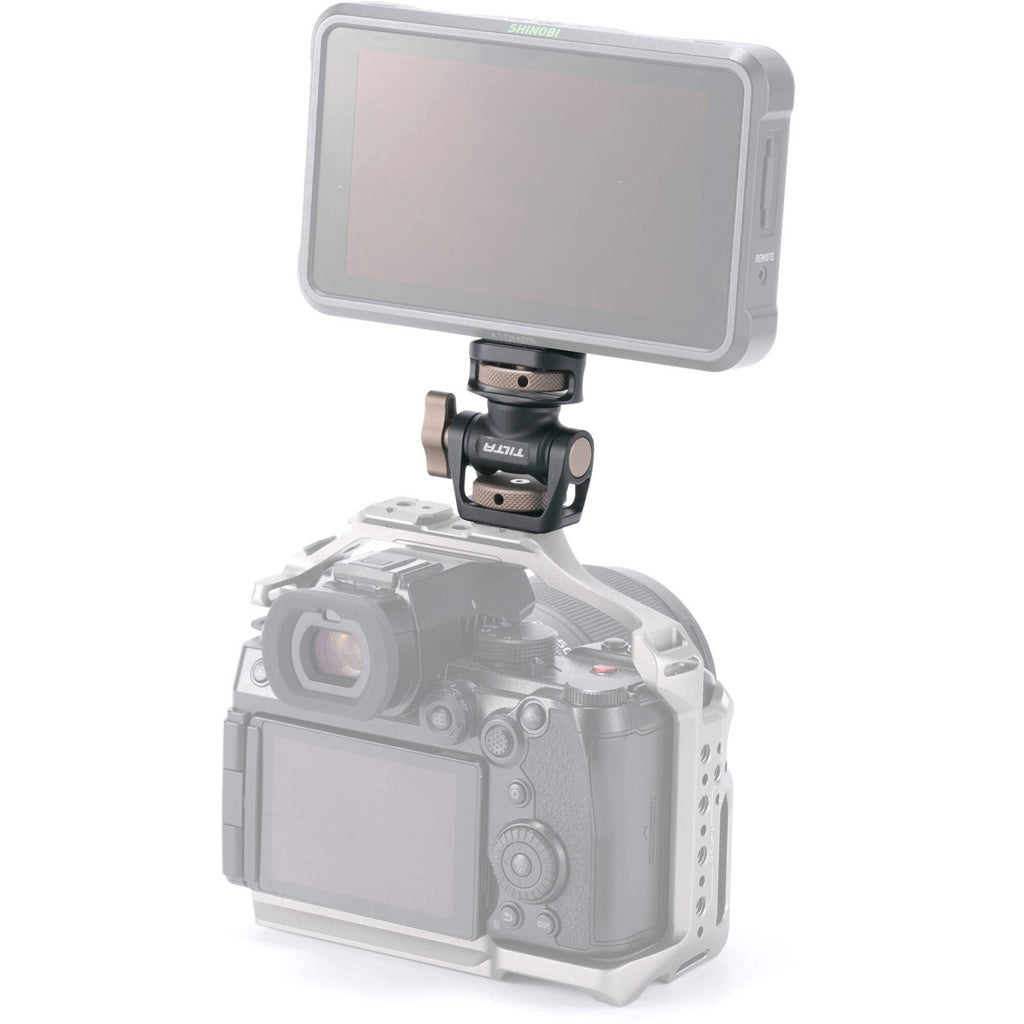 With a 4.4 lb load capacity, Tilta's Accessory Mounting Bracket, with male 1/4"-20 screws and locating pins on both ends, is ideal for mounting accessories such as wireless transmitters and external monitors that can benefit from its 360° pan and 175° tilt articulating range. Further, you can fine-tune the resistance of both axes using the included Allen key for the pan axis, and the side adjustment knob for the tilt axis, enabling you to accommodate differing payloads or to suit your personal preferences. The durable, lightweight aluminum alloy construction and locking thumbscrews round out its design.