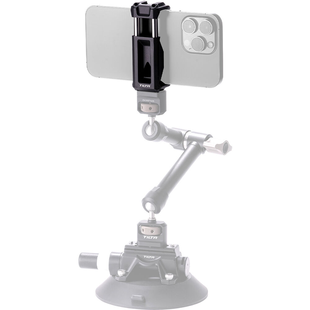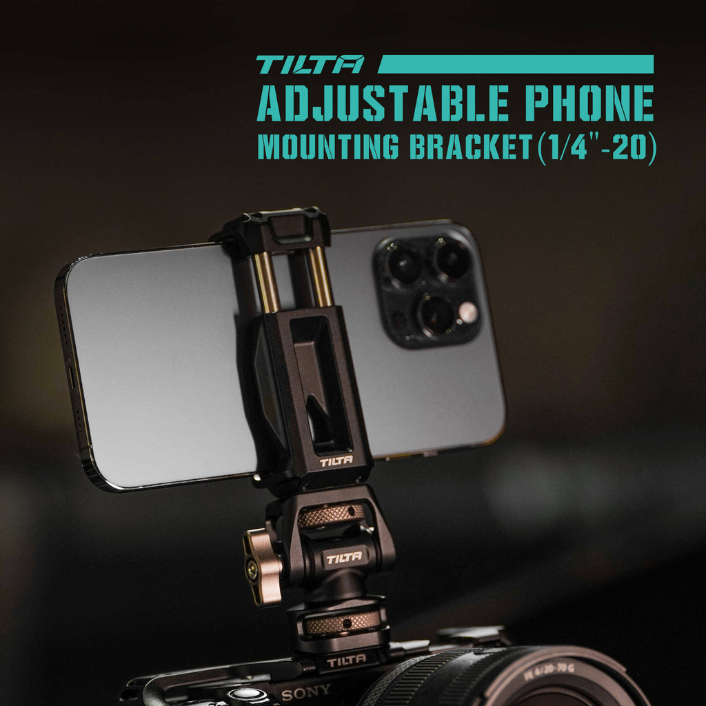 Give your mobile content a pro-style look by using this Adjustable Phone Mounting Bracket from Tilta to combine it with other professional gear. The bracket features a standard 1/4"-20 bottom mount, letting you attach it to a tripod or articulating arm. A cold shoe on top of the bracket is available for enhance what you capture with optional accessories, such as an LED light or external microphone. Opening far enough to accept devices between 2.3 and 4.3" wide and up to 0.6" thick, the bracket is compatible with most any smartphone.